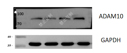 Western blot analysis of ADAM10 using anti-ADAM10 antibody (M00566).