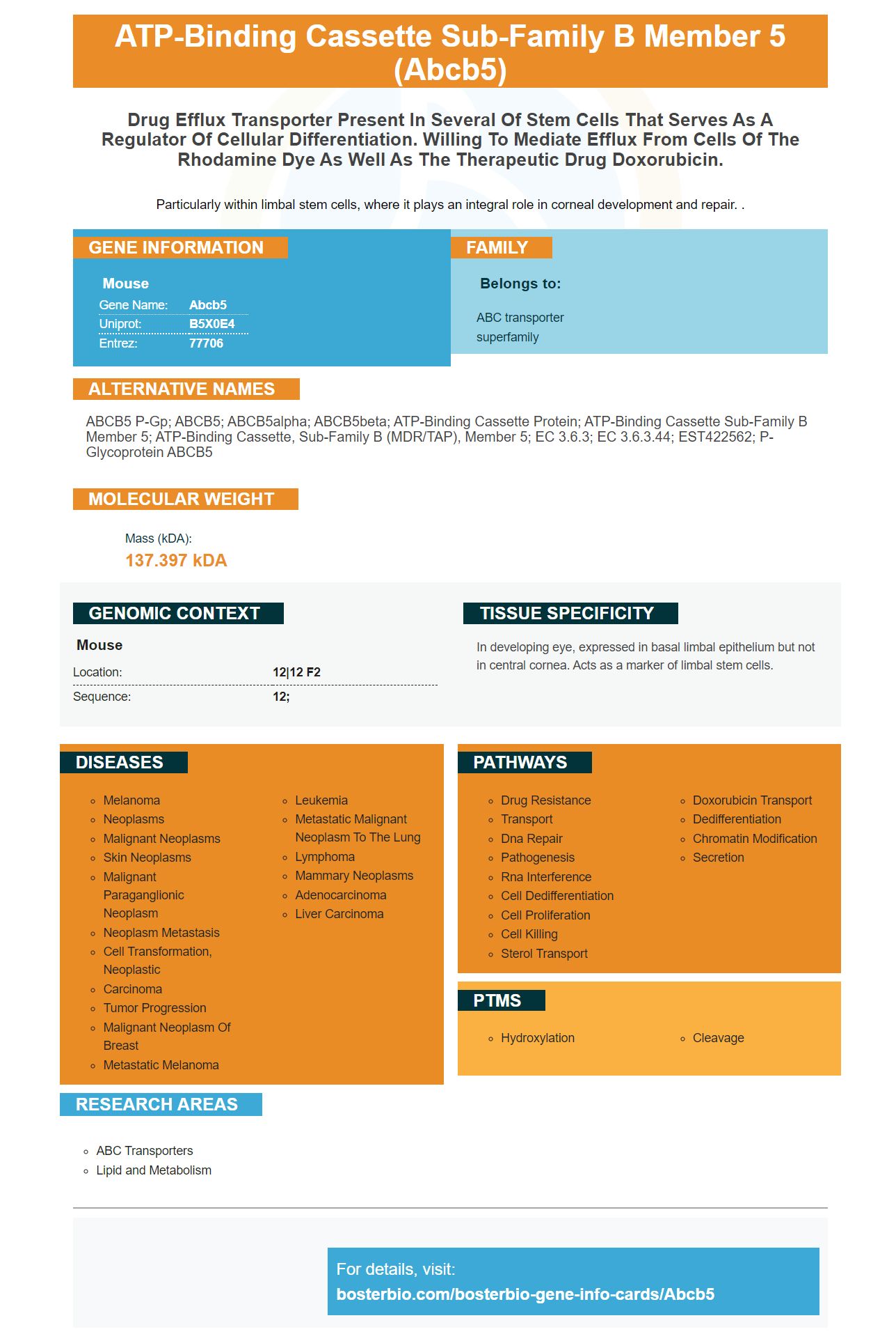 ABCB5 P-gp; ABCB5; ABCB5alpha; ABCB5beta; ATP-binding cassette protein; ATP-binding cassette sub-family B member 5; ATP-binding cassette, sub-family B (MDR/TAP), member 5; EC 3.6.3; EC 3.6.3.44; EST422562; P-glycoprotein ABCB5