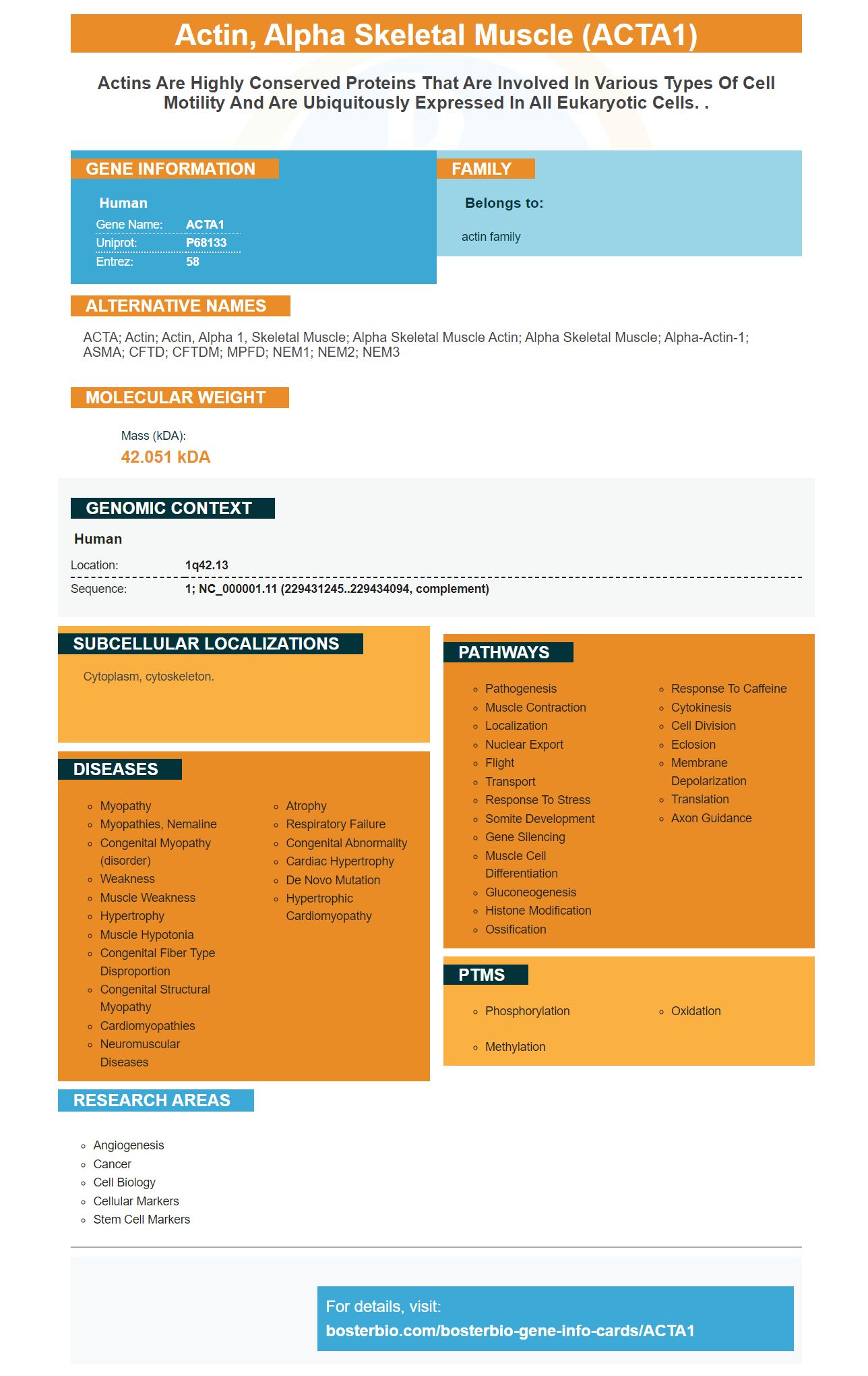 ACTA; Actin; actin, alpha 1, skeletal muscle; alpha skeletal muscle actin; alpha skeletal muscle; alpha-actin-1; ASMA; CFTD; CFTDM; MPFD; NEM1; NEM2; NEM3