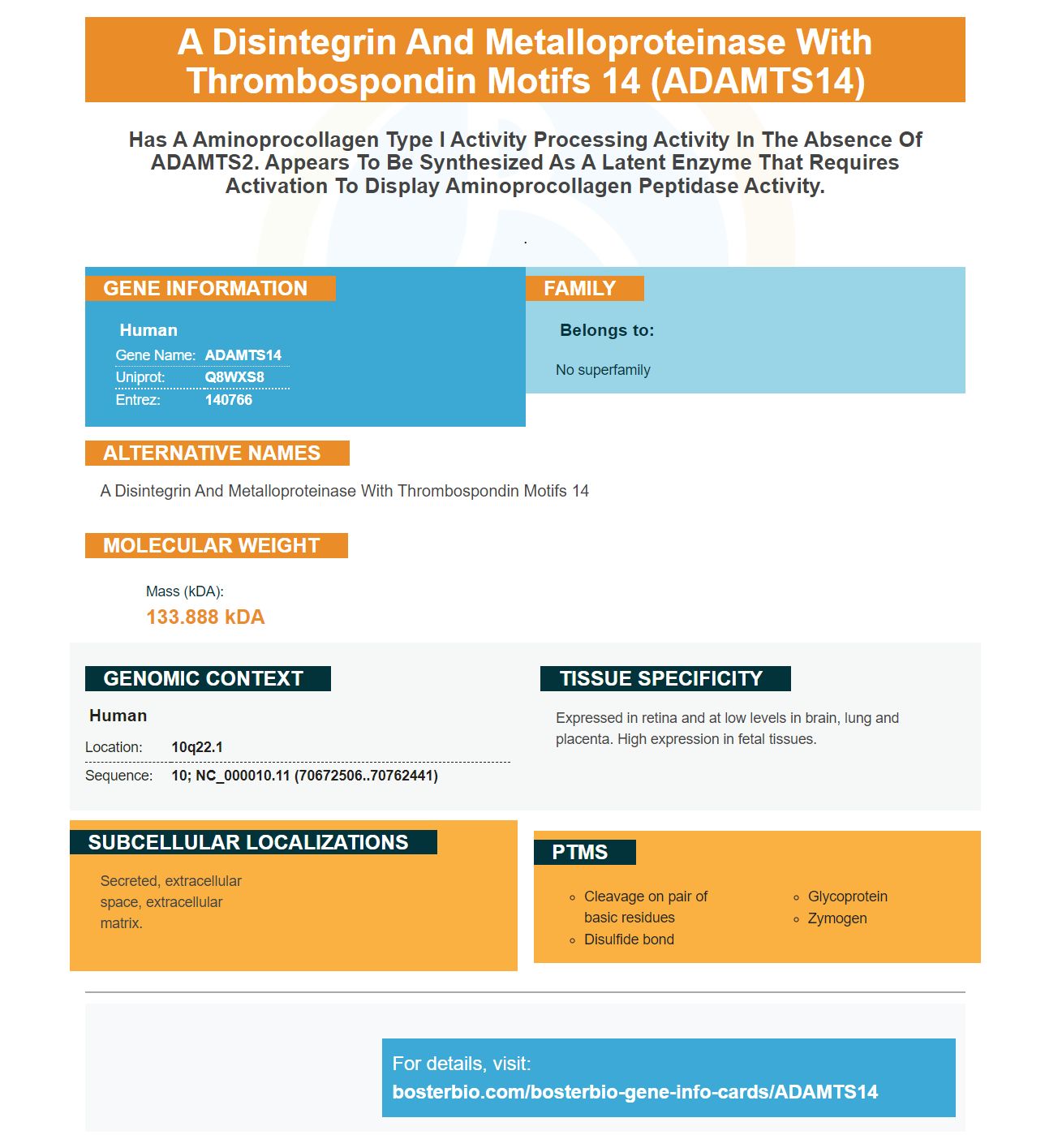 Facts about A disintegrin and metalloproteinase with thrombospondin motifs 14.