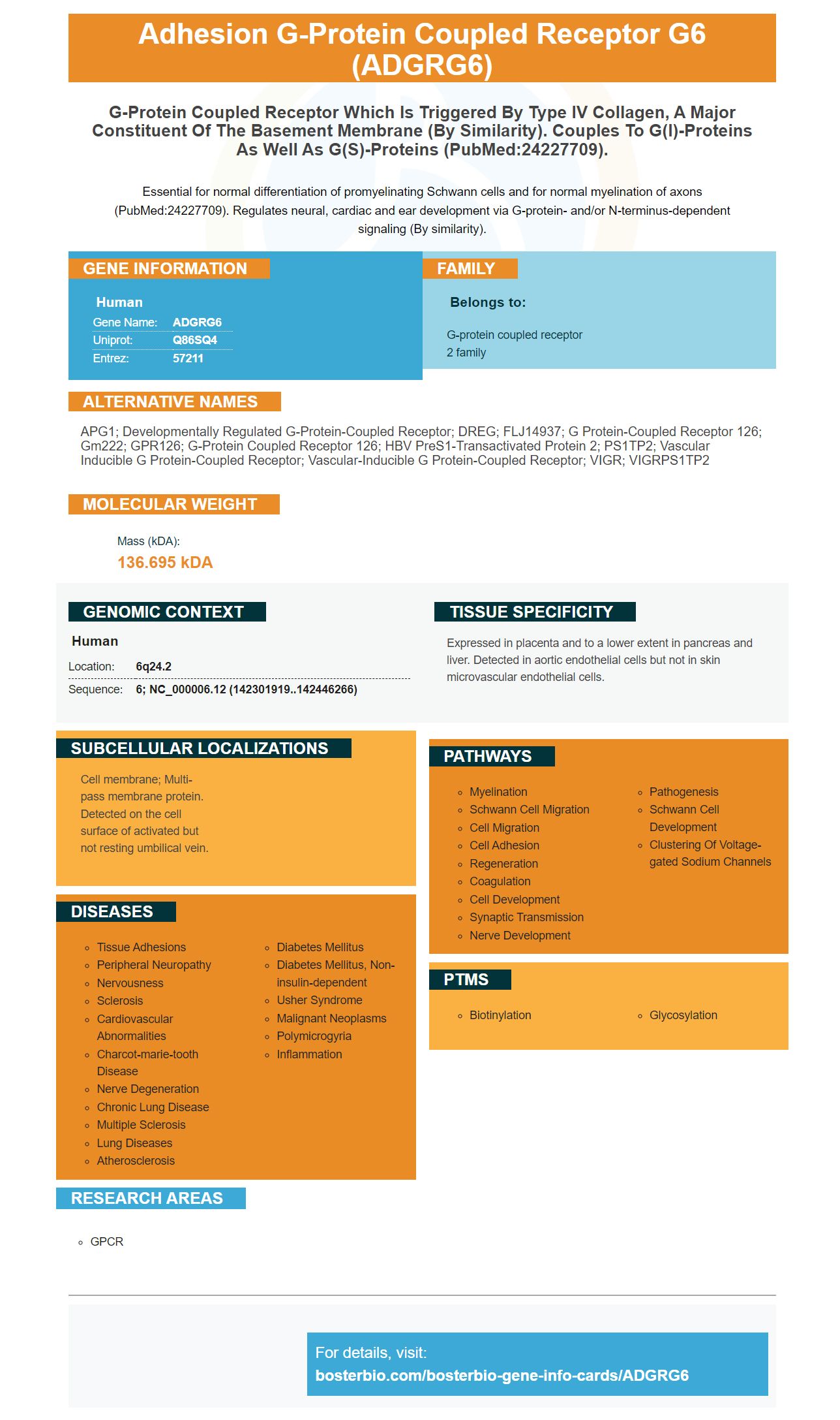 Facts about Adhesion G-protein coupled receptor G6.