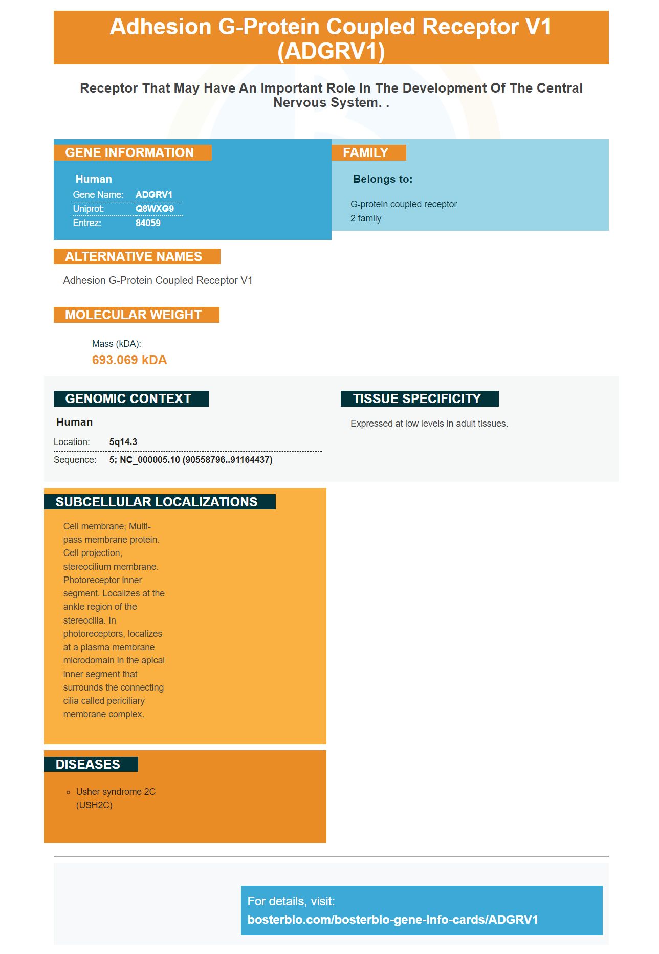 PMID: 11606593 by McMillan D.R., et al. Very large G protein-coupled receptor-1, the largest known cell surface protein, is highly expressed in the developing central nervous system.