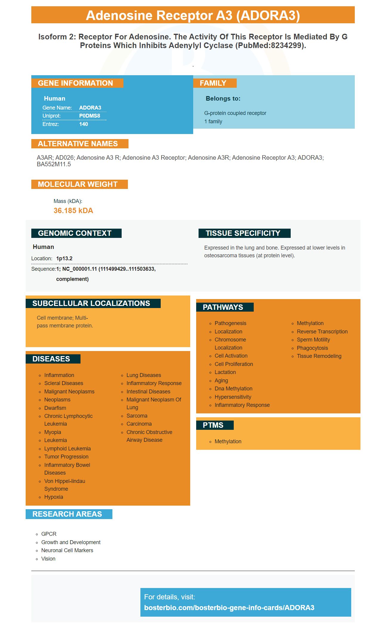 A3AR; AD026; Adenosine A3 R; adenosine A3 receptor; Adenosine A3R; adenosine receptor A3; ADORA3; bA552M11.5