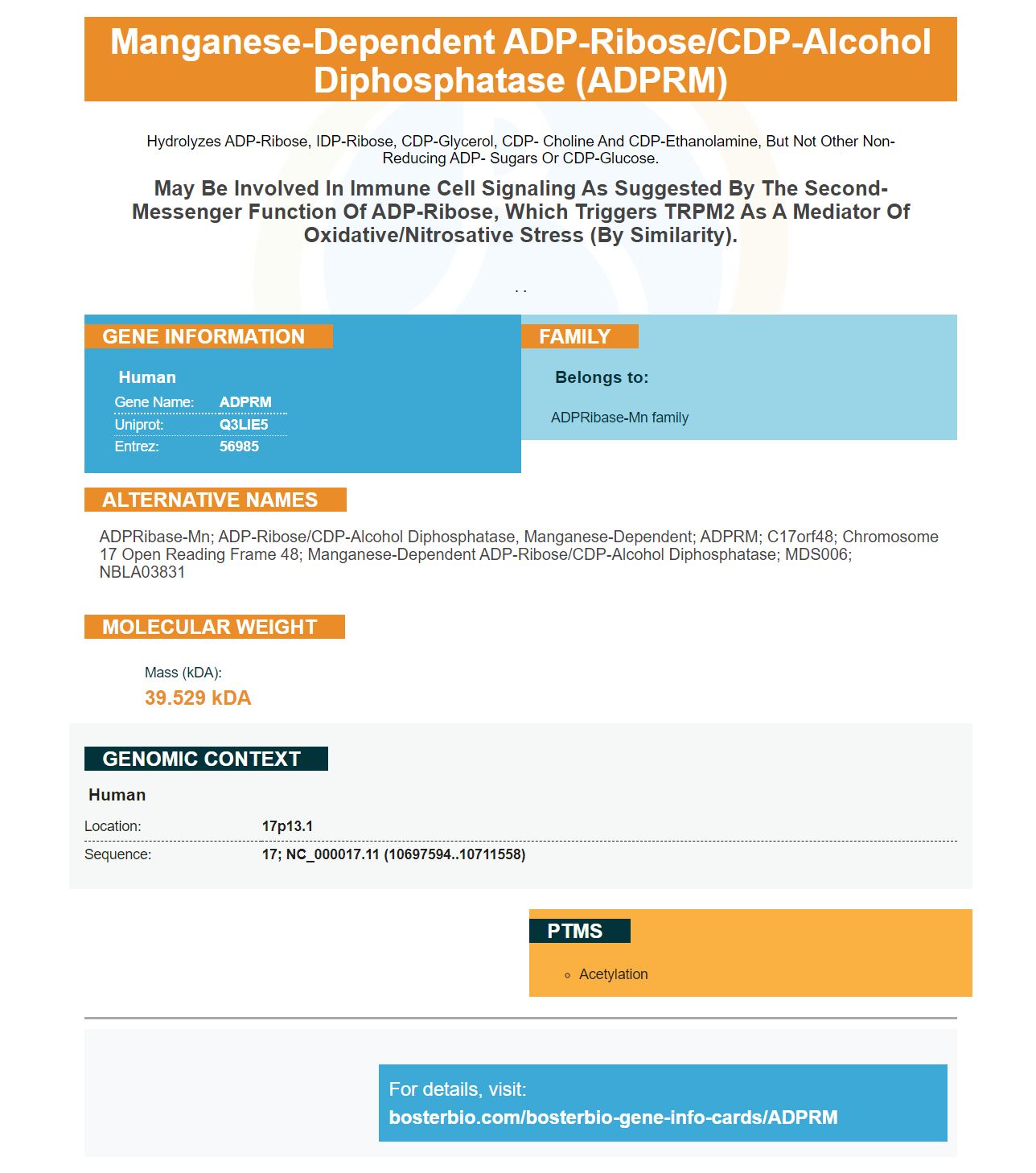 ADPRibase-Mn; ADP-ribose/CDP-alcohol diphosphatase, manganese-dependent; ADPRM; C17orf48; chromosome 17 open reading frame 48; manganese-dependent ADP-ribose/CDP-alcohol diphosphatase; MDS006; NBLA03831