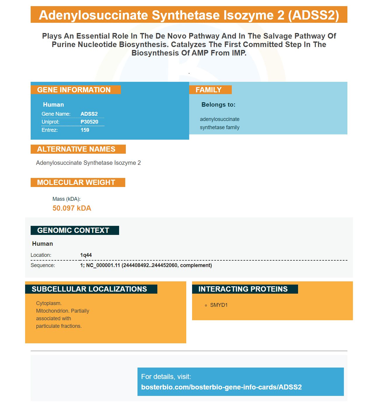 PMID: 1592113 by Powell S.M., et al. Cloning and characterization of the cDNA encoding human adenylosuccinate synthetase.