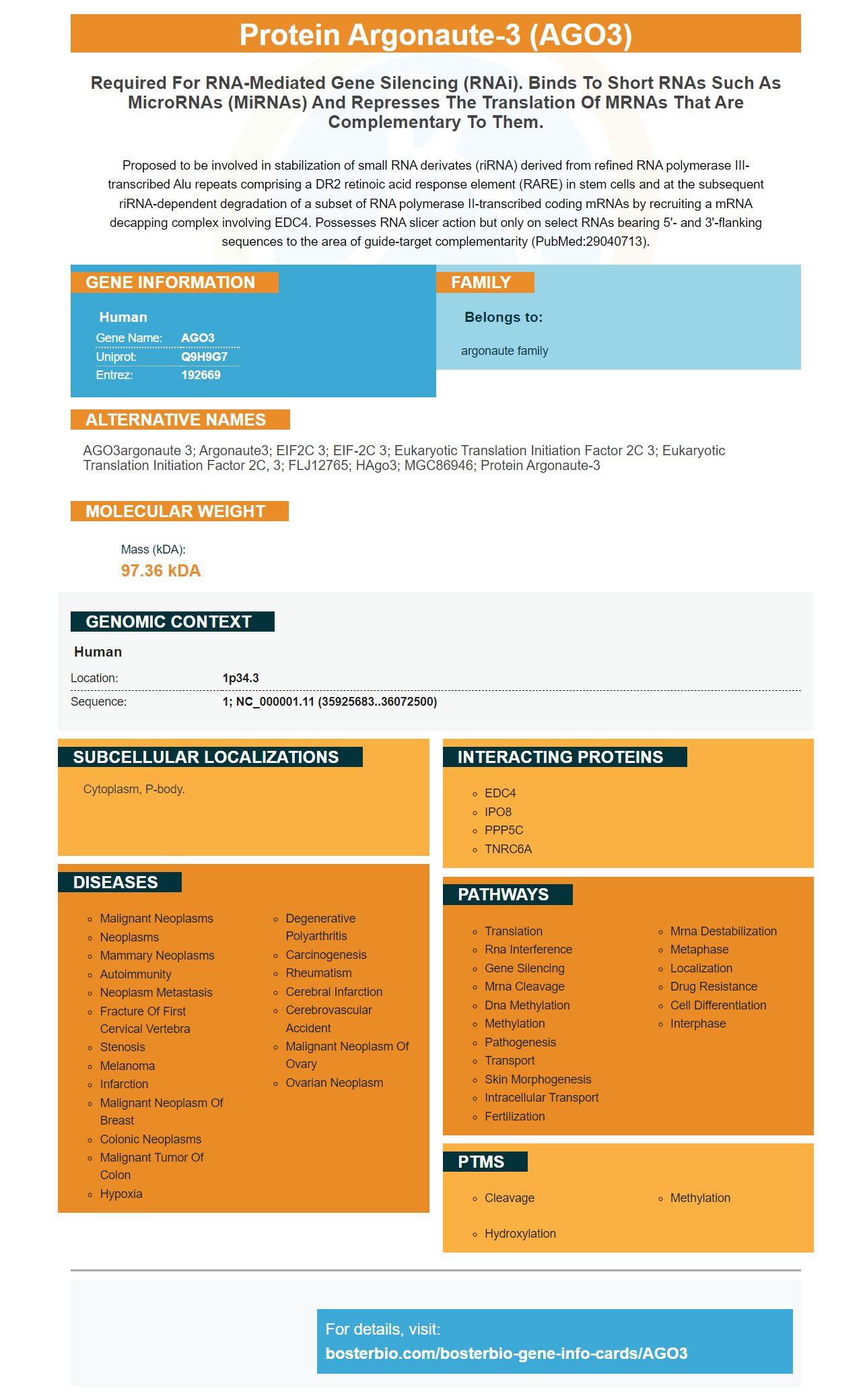 AGO3argonaute 3; argonaute3; eIF2C 3; eIF-2C 3; Eukaryotic translation initiation factor 2C 3; eukaryotic translation initiation factor 2C, 3; FLJ12765; hAgo3; MGC86946; protein argonaute-3