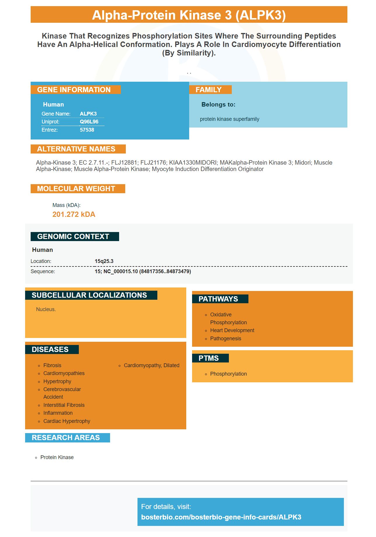 alpha-kinase 3; EC 2.7.11.-; FLJ12881; FLJ21176; KIAA1330MIDORI; MAKalpha-protein kinase 3; Midori; muscle alpha-kinase; Muscle alpha-protein kinase; myocyte induction differentiation originator