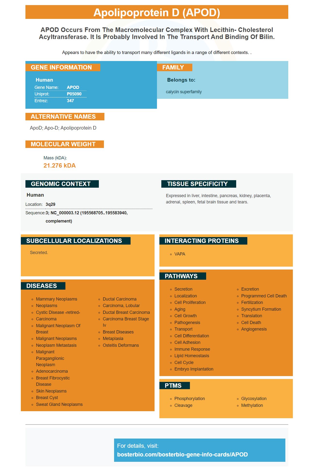PMID: 2439269 by Drayna D.T., et al. Human apolipoprotein D gene: gene sequence, chromosome localization, and homology to the alpha 2u-globulin superfamily.