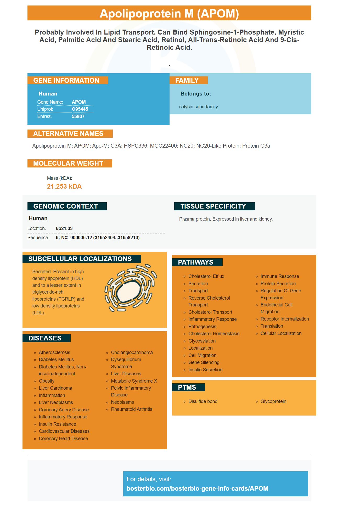 Apolipoprotein M; APOM; apo-M; G3A; HSPC336; MGC22400; NG20; NG20-like protein; Protein G3a