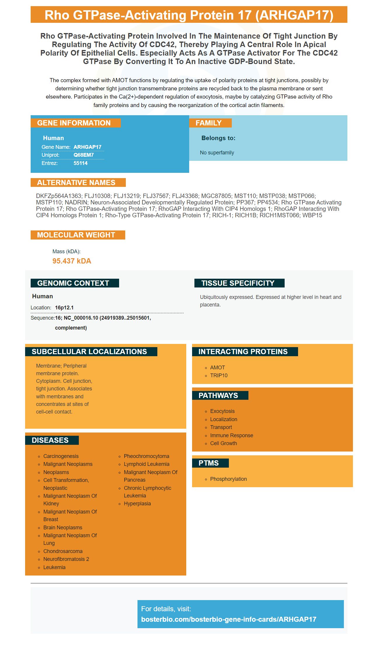 DKFZp564A1363; FLJ10308; FLJ13219; FLJ37567; FLJ43368; MGC87805; MST110; MSTP038; MSTP066; MSTP110; NADRIN; neuron-associated developmentally regulated protein; PP367; PP4534; Rho GTPase activating protein 17; rho GTPase-activating protein 17; RhoGAP interacting with CIP4 homologs 1; RhoGAP interacting with CIP4 homologs protein 1; Rho-type GTPase-activating protein 17; RICH-1; RICH1B; RICH1MST066; WBP15