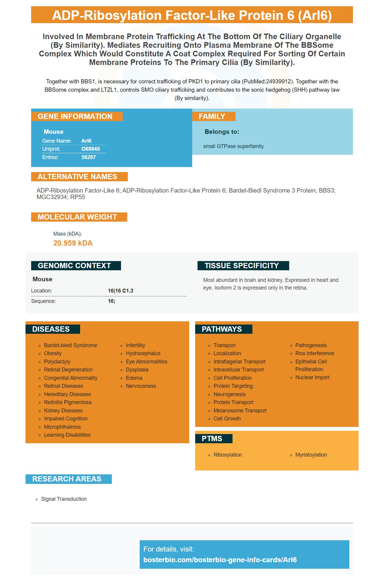 ADP-ribosylation factor-like 6; ADP-ribosylation factor-like protein 6; Bardet-Biedl syndrome 3 protein; BBS3; MGC32934; RP55