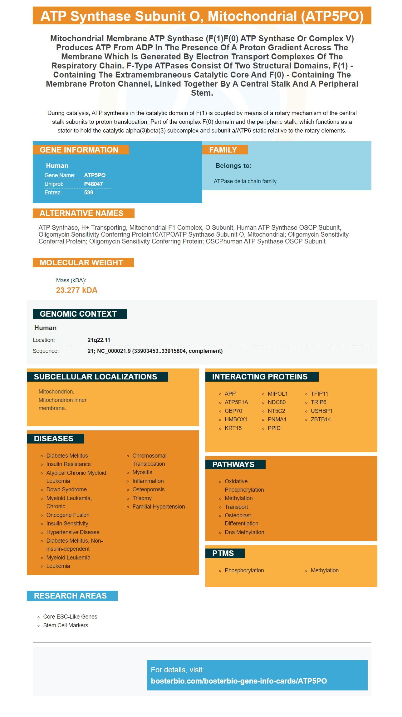 Facts about ATP synthase subunit O, mitochondrial.