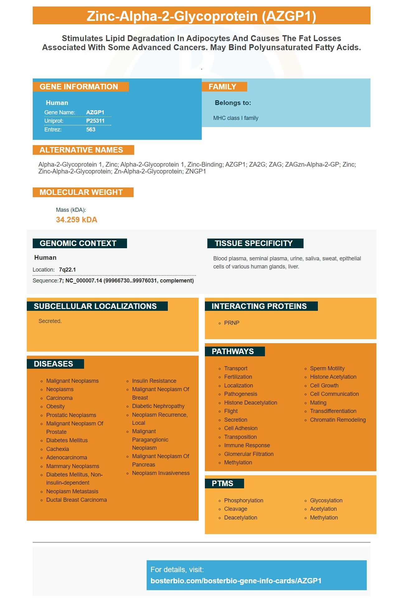 alpha-2-glycoprotein 1, zinc; alpha-2-glycoprotein 1, zinc-binding; AZGP1; ZA2G; ZAG; ZAGzn-alpha-2-GP; zinc; zinc-alpha-2-glycoprotein; zn-alpha-2-glycoprotein; ZNGP1
