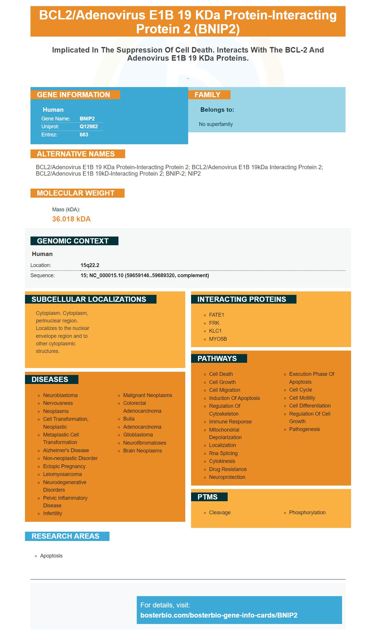 BCL2/adenovirus E1B 19 kDa protein-interacting protein 2; BCL2/adenovirus E1B 19kDa interacting protein 2; BCL2/adenovirus E1B 19kD-interacting protein 2; BNIP-2; NIP2