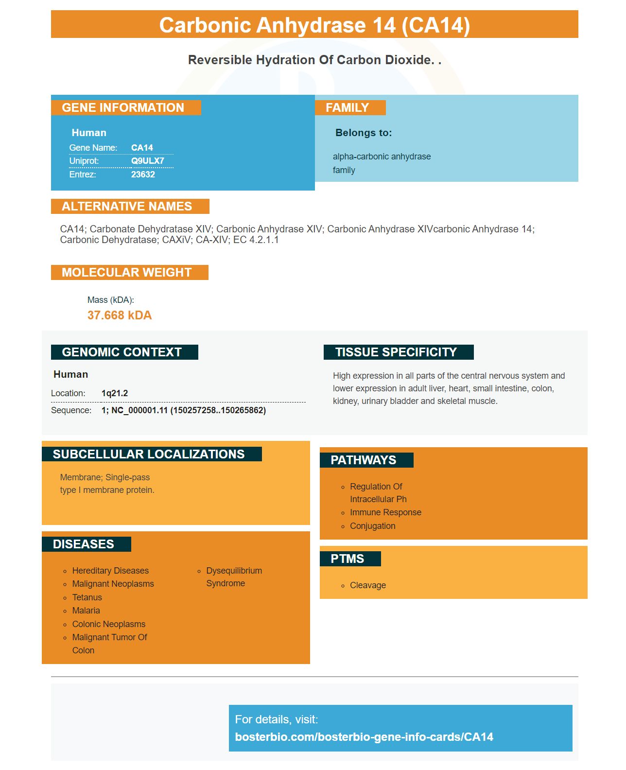 CA14; Carbonate dehydratase XIV; Carbonic Anhydrase XIV; carbonic anhydrase XIVcarbonic anhydrase 14; carbonic dehydratase; CAXiV; CA-XIV; EC 4.2.1.1