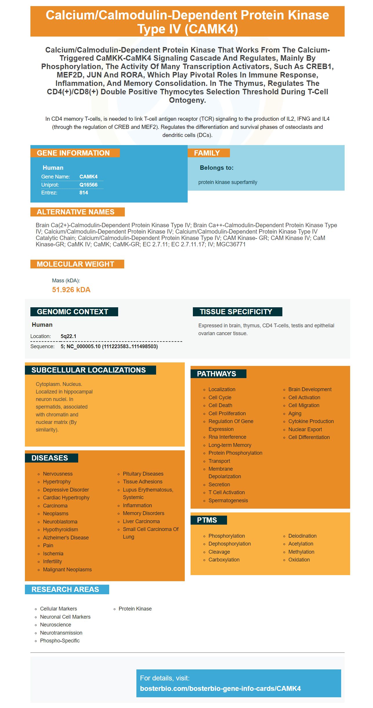 Facts about Calcium/calmodulin-dependent protein kinase type IV.