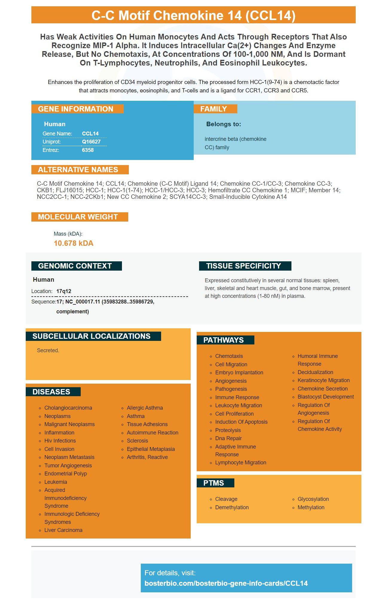 Facts about C-C motif chemokine 14.