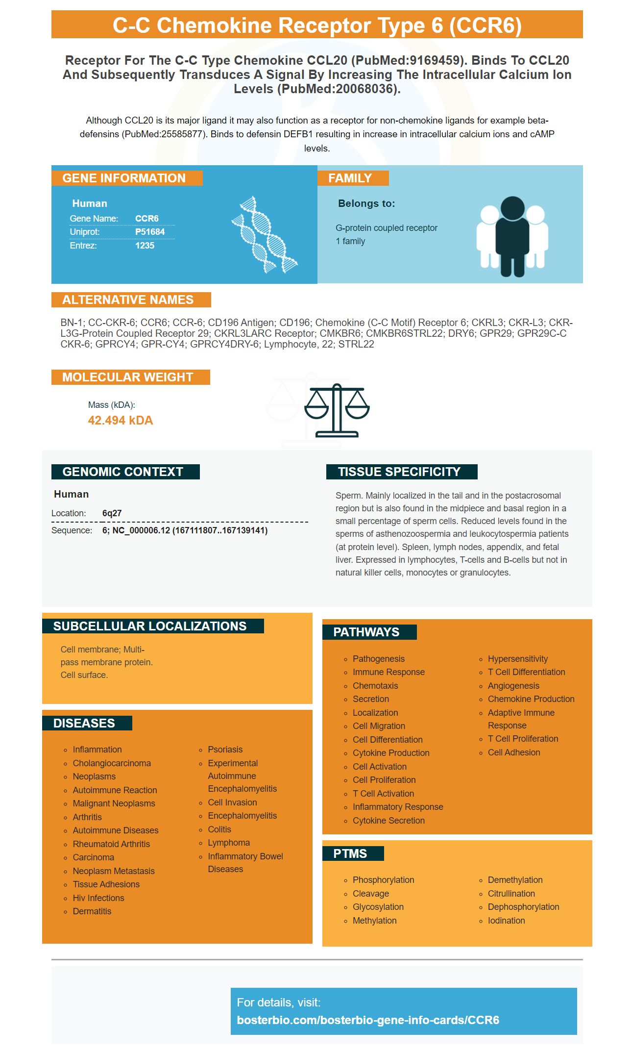 BN-1; CC-CKR-6; CCR6; CCR-6; CD196 antigen; CD196; chemokine (C-C motif) receptor 6; CKRL3; CKR-L3; CKR-L3G-protein coupled receptor 29; CKRL3LARC receptor; CMKBR6; CMKBR6STRL22; DRY6; GPR29; GPR29C-C CKR-6; GPRCY4; GPR-CY4; GPRCY4DRY-6; lymphocyte, 22; STRL22