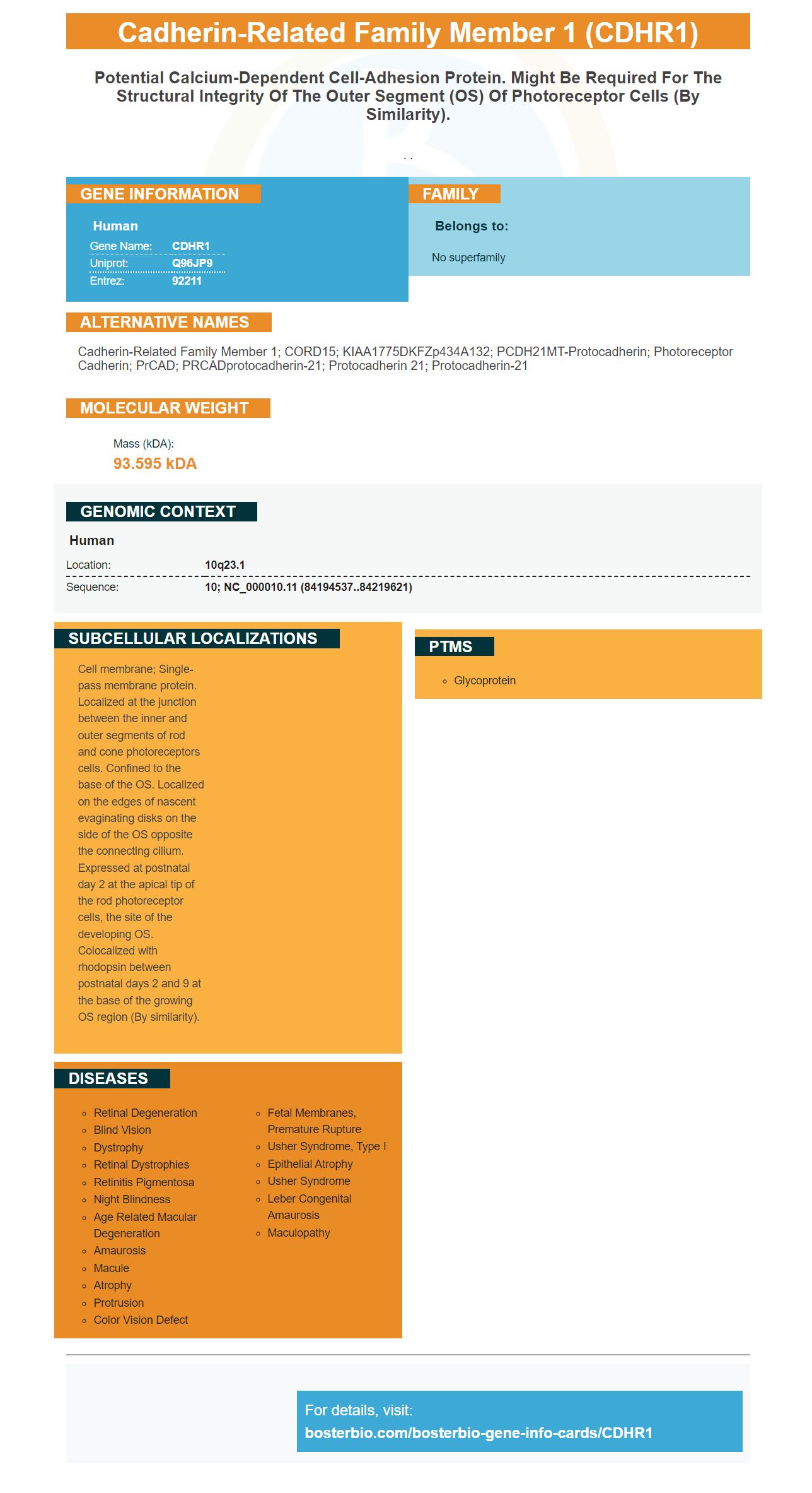 cadherin-related family member 1; CORD15; KIAA1775DKFZp434A132; PCDH21MT-protocadherin; Photoreceptor cadherin; prCAD; PRCADprotocadherin-21; protocadherin 21; Protocadherin-21