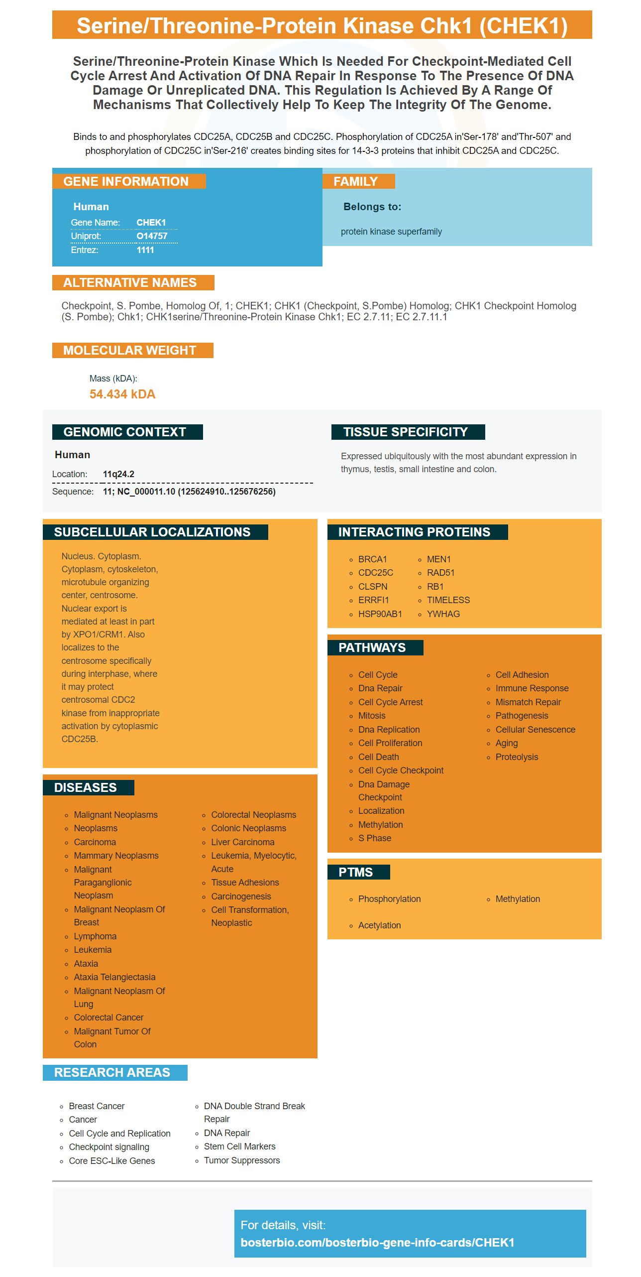Checkpoint, S. pombe, homolog of, 1; CHEK1; CHK1 (checkpoint, S.pombe) homolog; CHK1 checkpoint homolog (S. pombe); Chk1; CHK1serine/threonine-protein kinase Chk1; EC 2.7.11; EC 2.7.11.1