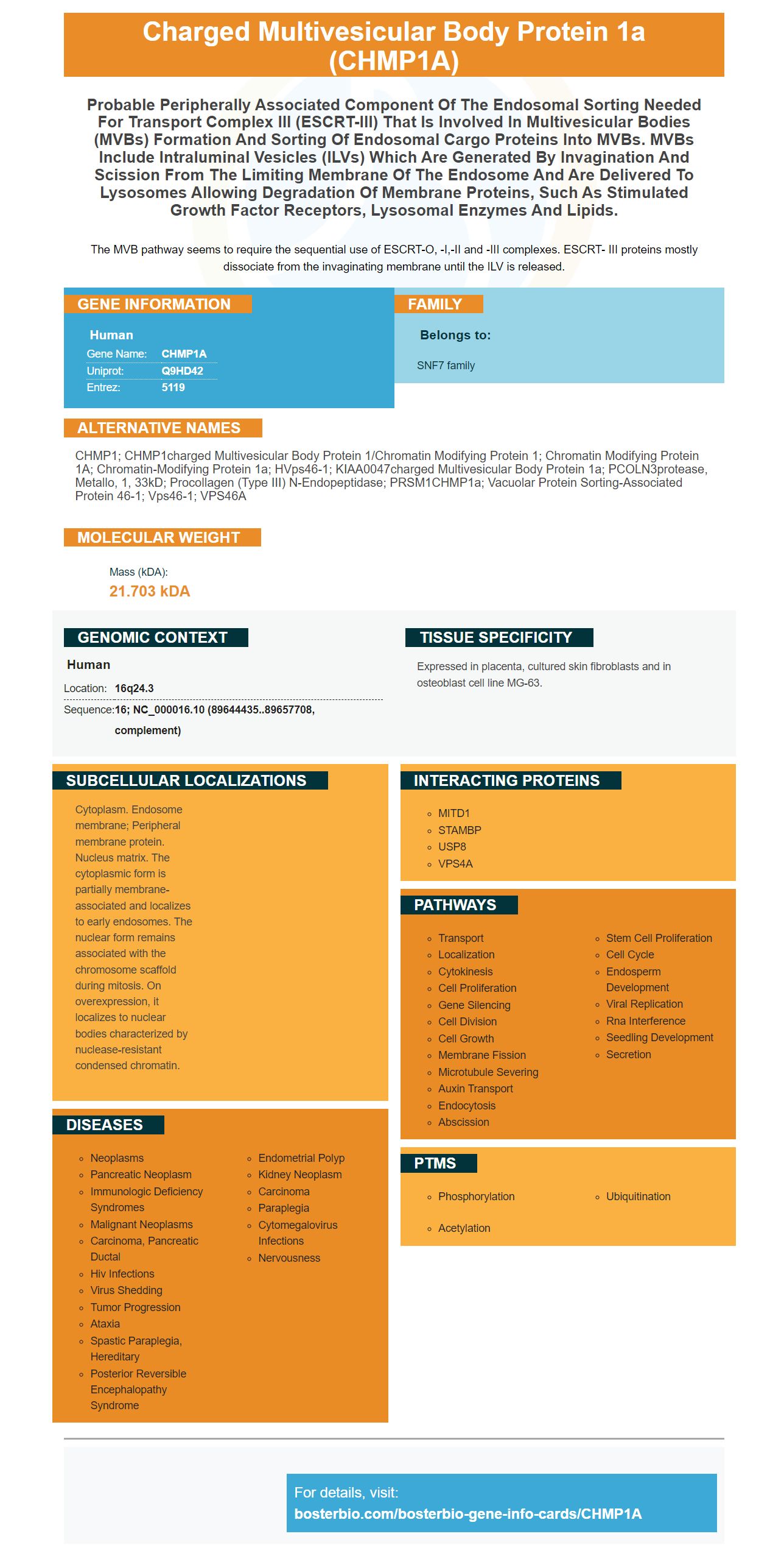 CHMP1; CHMP1charged multivesicular body protein 1/chromatin modifying protein 1; chromatin modifying protein 1A; Chromatin-modifying protein 1a; hVps46-1; KIAA0047charged multivesicular body protein 1a; PCOLN3protease, metallo, 1, 33kD; procollagen (type III) N-endopeptidase; PRSM1CHMP1a; Vacuolar protein sorting-associated protein 46-1; Vps46-1; VPS46A