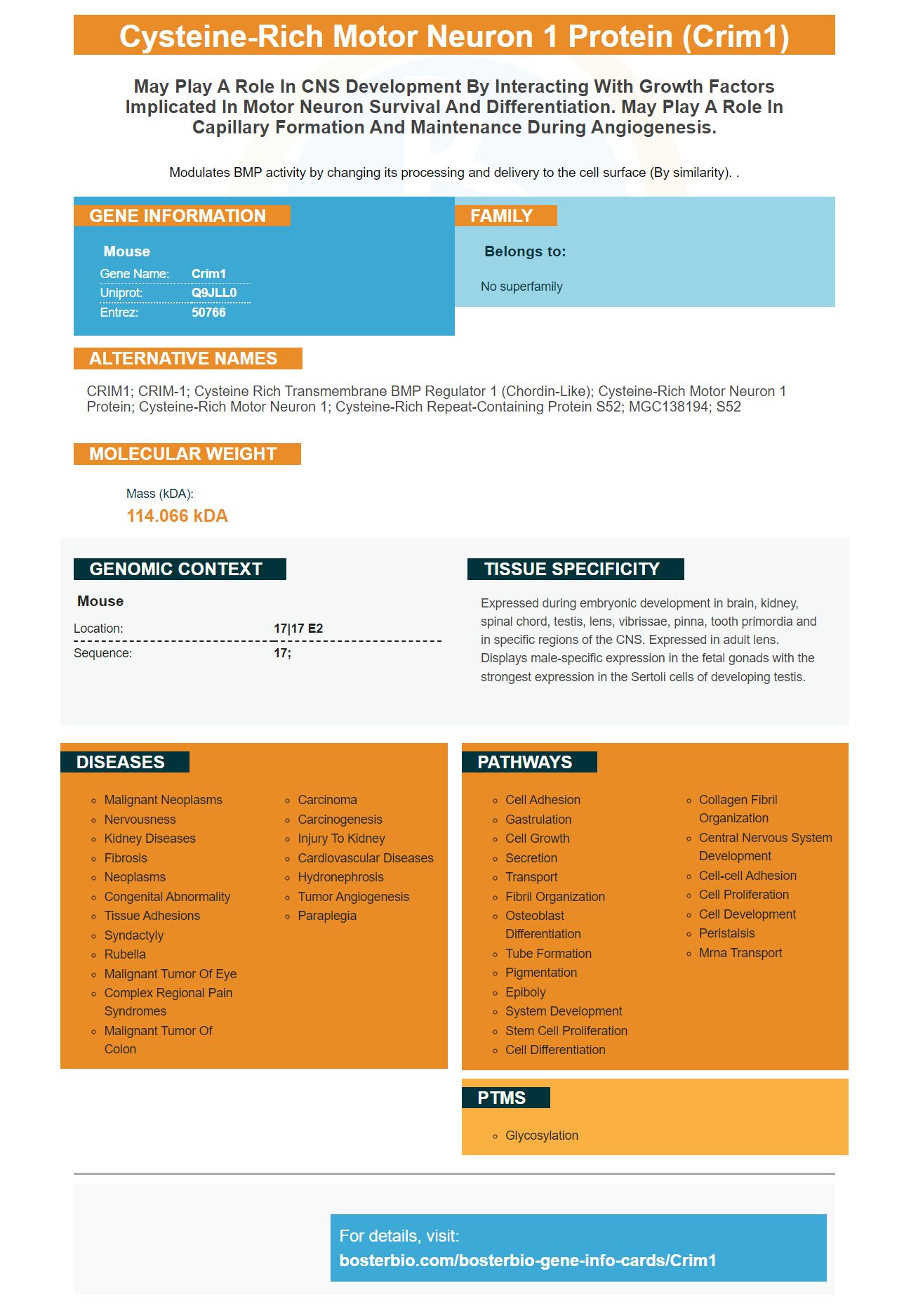 CRIM1; CRIM-1; cysteine rich transmembrane BMP regulator 1 (chordin-like); cysteine-rich motor neuron 1 protein; cysteine-rich motor neuron 1; Cysteine-rich repeat-containing protein S52; MGC138194; S52