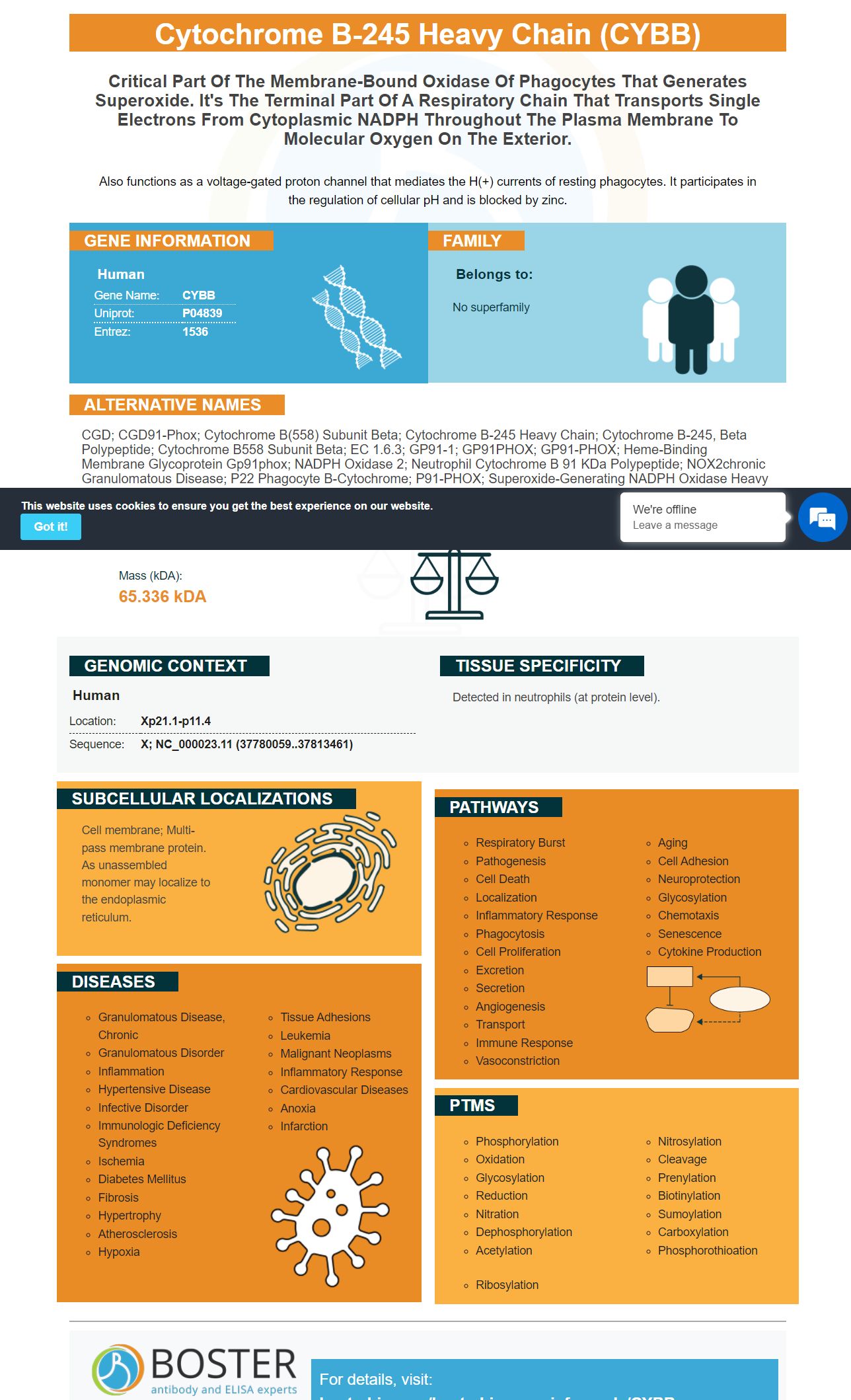 CGD; CGD91-phox; Cytochrome b(558) subunit beta; cytochrome b-245 heavy chain; cytochrome b-245, beta polypeptide; Cytochrome b558 subunit beta; EC 1.6.3; GP91-1; GP91PHOX; GP91-PHOX; Heme-binding membrane glycoprotein gp91phox; NADPH oxidase 2; Neutrophil cytochrome b 91 kDa polypeptide; NOX2chronic granulomatous disease; p22 phagocyte B-cytochrome; p91-PHOX; Superoxide-generating NADPH oxidase heavy chain subunit