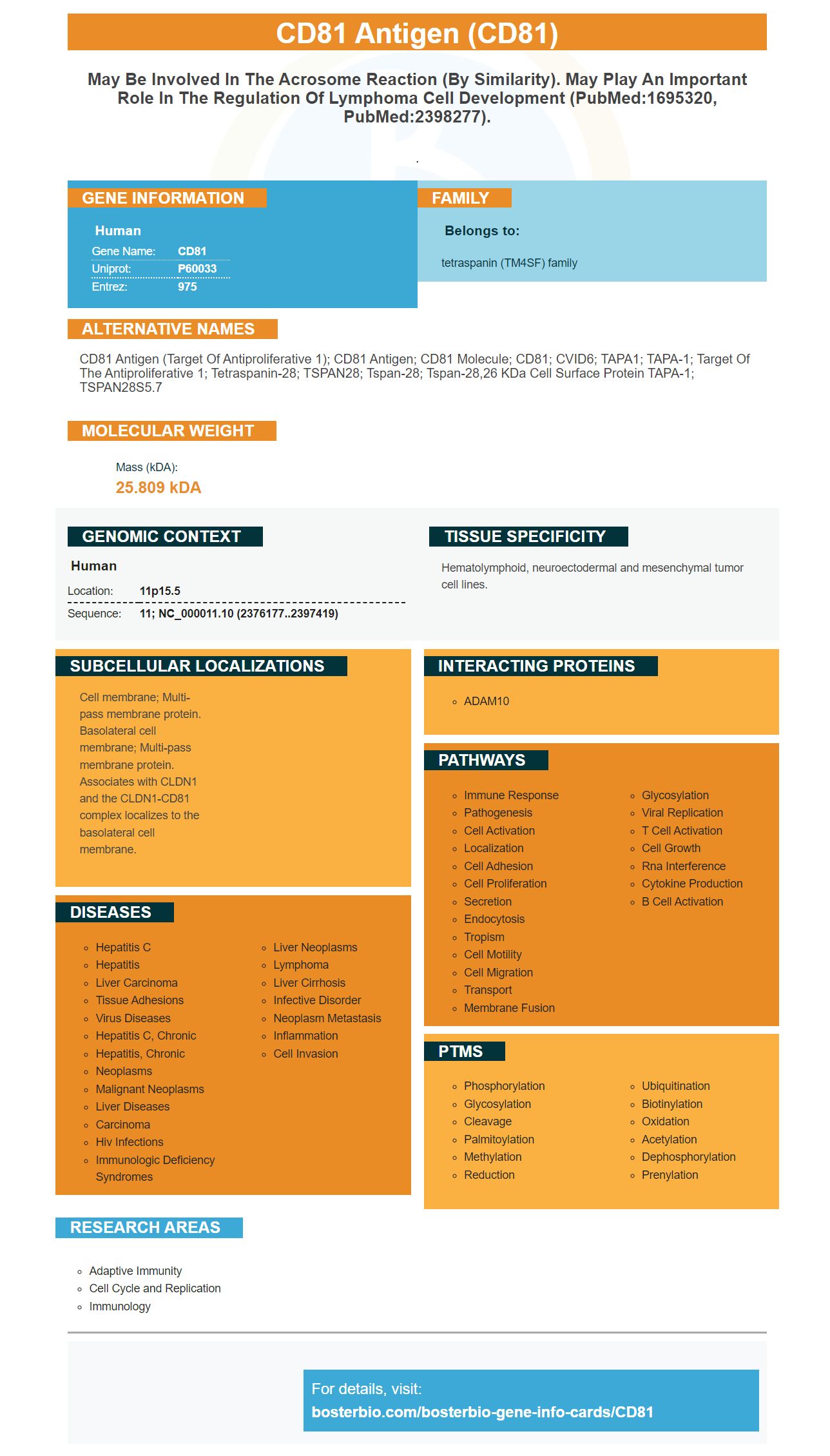 CD81 antigen (target of antiproliferative 1); CD81 antigen; CD81 molecule; CD81; CVID6; TAPA1; TAPA-1; Target of the antiproliferative 1; Tetraspanin-28; TSPAN28; Tspan-28; tspan-28,26 kDa cell surface protein TAPA-1; TSPAN28S5.7