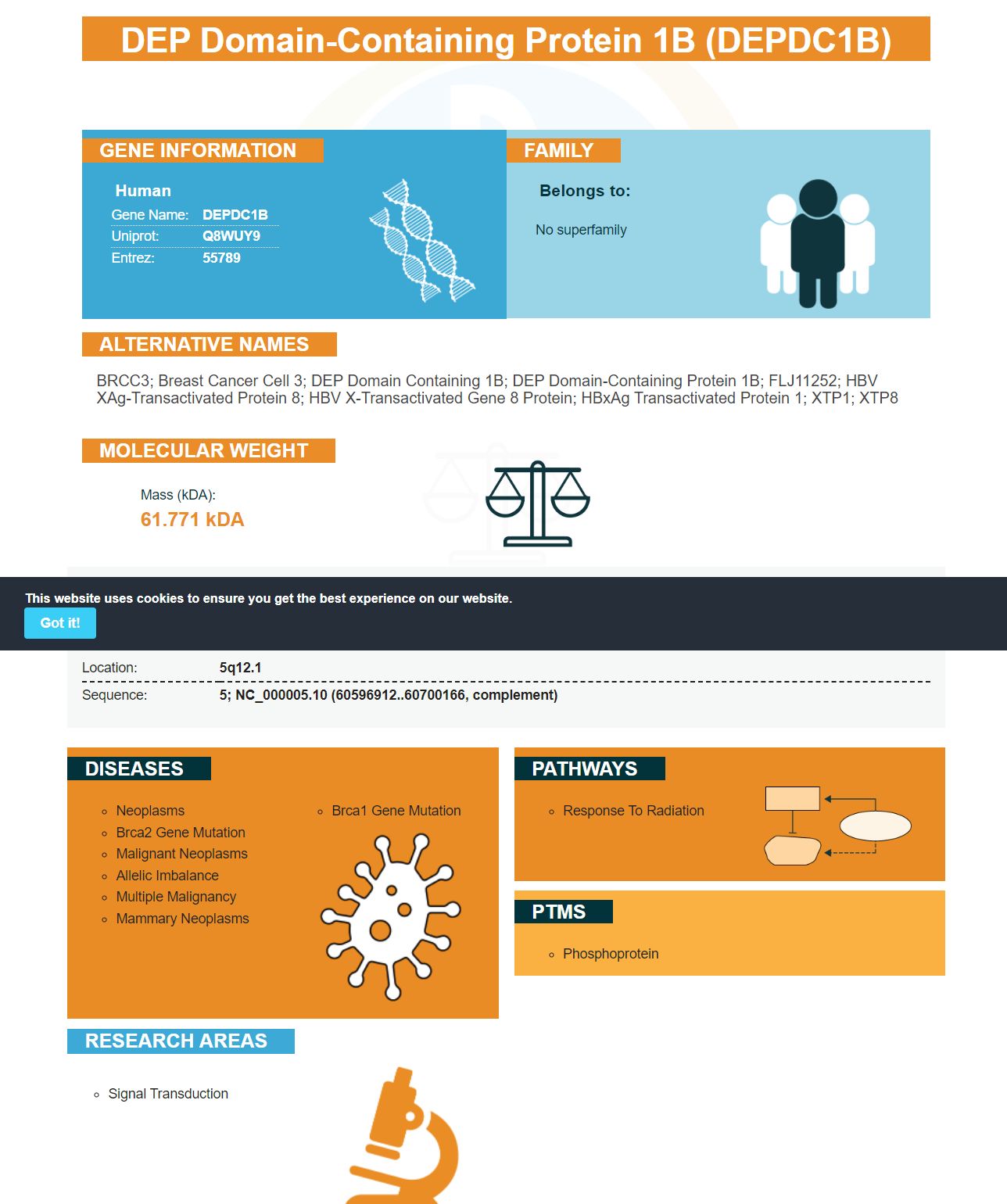 BRCC3; breast cancer cell 3; DEP domain containing 1B; DEP domain-containing protein 1B; FLJ11252; HBV XAg-transactivated protein 8; HBV X-transactivated gene 8 protein; HBxAg transactivated protein 1; XTP1; XTP8
