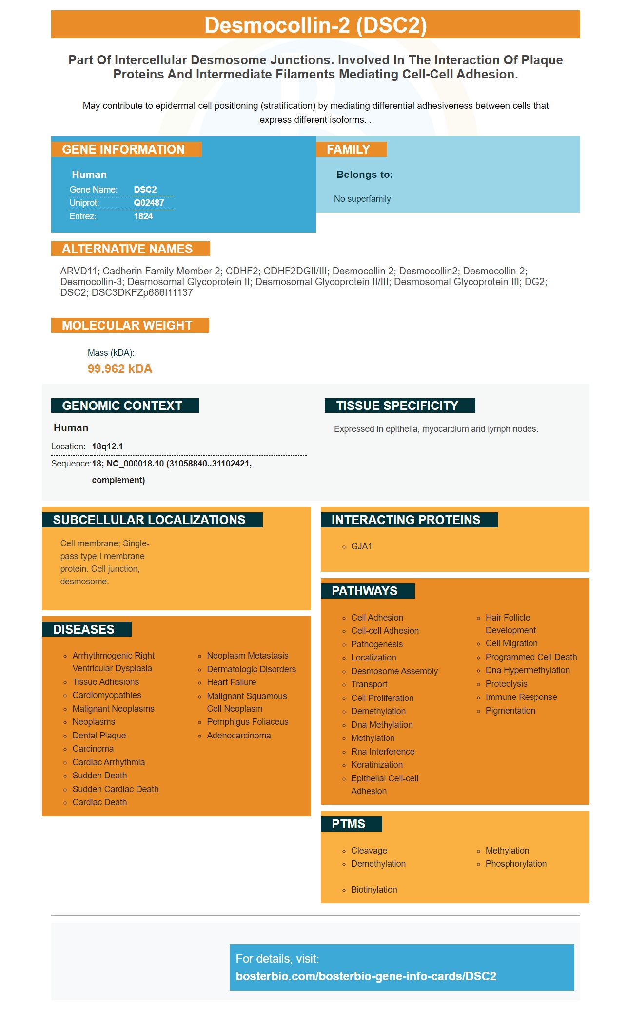 ARVD11; Cadherin family member 2; CDHF2; CDHF2DGII/III; desmocollin 2; Desmocollin2; Desmocollin-2; Desmocollin-3; Desmosomal glycoprotein II; desmosomal glycoprotein II/III; Desmosomal glycoprotein III; DG2; DSC2; DSC3DKFZp686I11137
