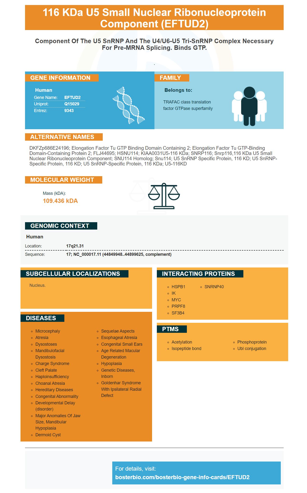 DKFZp686E24196; elongation factor Tu GTP binding domain containing 2; Elongation factor Tu GTP-binding domain-containing protein 2; FLJ44695; hSNU114; KIAA0031U5-116 kDa; SNRP116; Snrp116,116 kDa U5 small nuclear ribonucleoprotein component; SNU114 homolog; Snu114; U5 snRNP specific protein, 116 kD; U5 snRNP-specific protein, 116 kD; U5 snRNP-specific protein, 116 kDa; U5-116KD