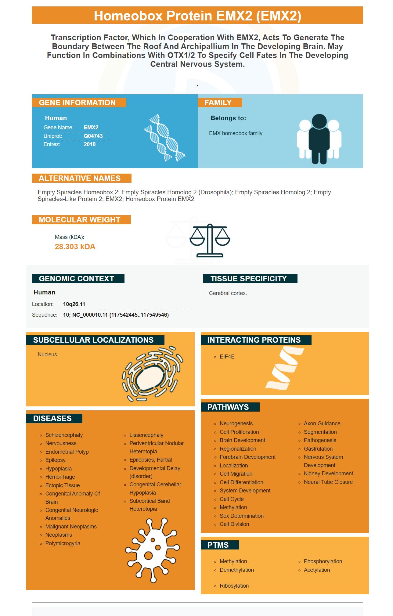 empty spiracles homeobox 2; empty spiracles homolog 2 (Drosophila); Empty spiracles homolog 2; Empty spiracles-like protein 2; EMX2; homeobox protein EMX2