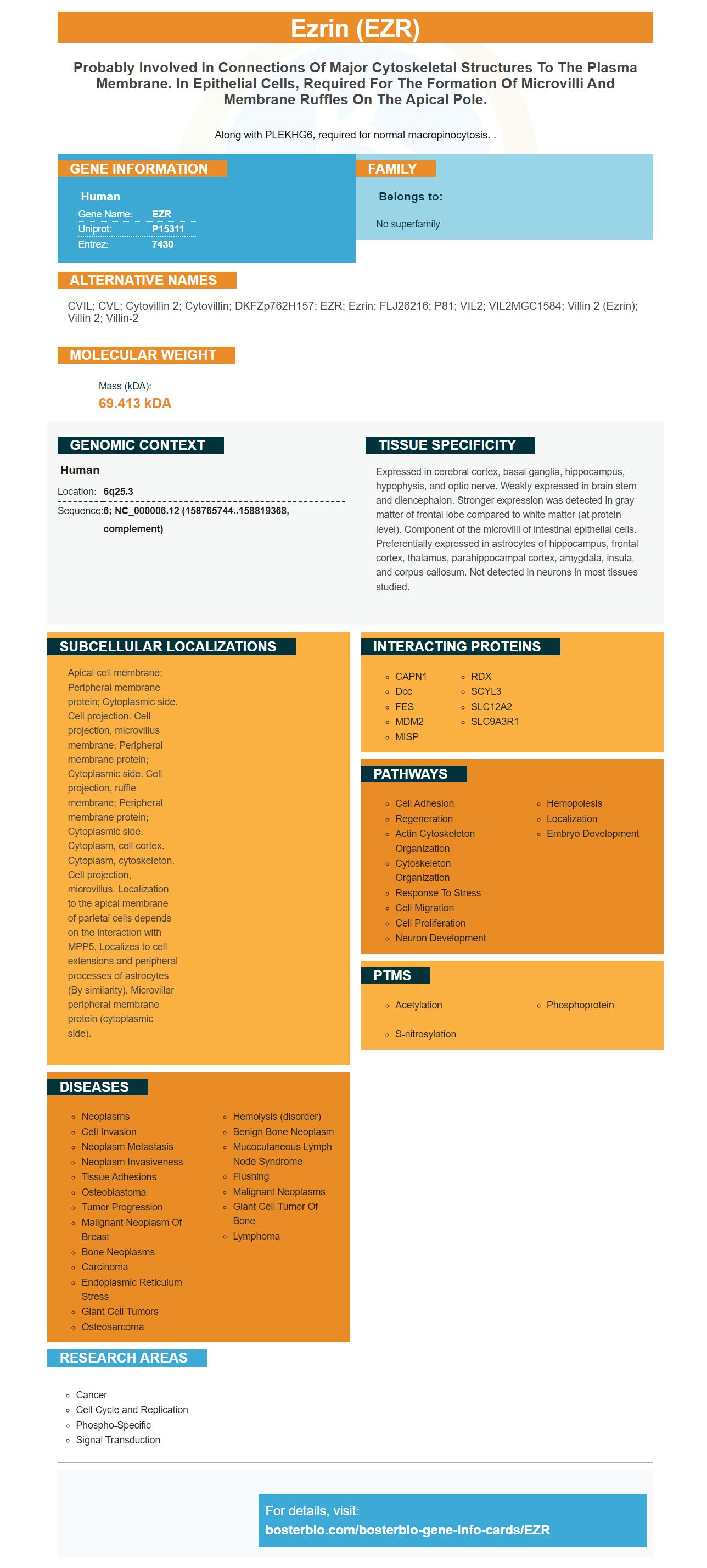CVIL; CVL; Cytovillin 2; Cytovillin; DKFZp762H157; EZR; Ezrin; FLJ26216; p81; VIL2; VIL2MGC1584; villin 2 (ezrin); Villin 2; villin-2