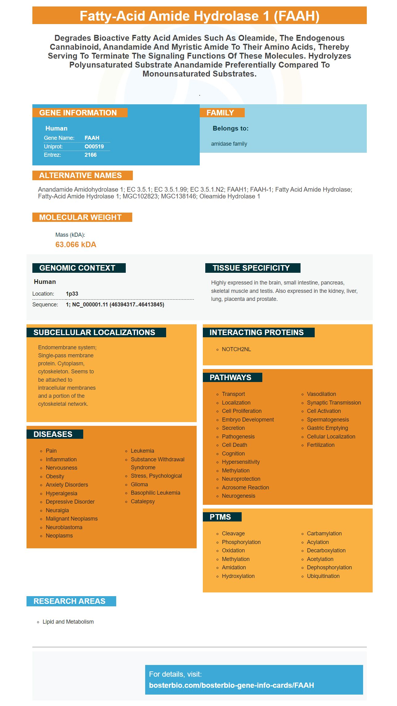 Anandamide amidohydrolase 1; EC 3.5.1; EC 3.5.1.99; EC 3.5.1.n2; FAAH1; FAAH-1; fatty acid amide hydrolase; fatty-acid amide hydrolase 1; MGC102823; MGC138146; Oleamide hydrolase 1