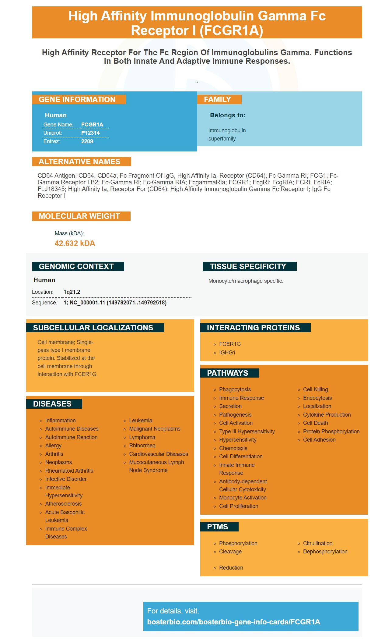 Facts about High affinity immunoglobulin gamma Fc receptor I.