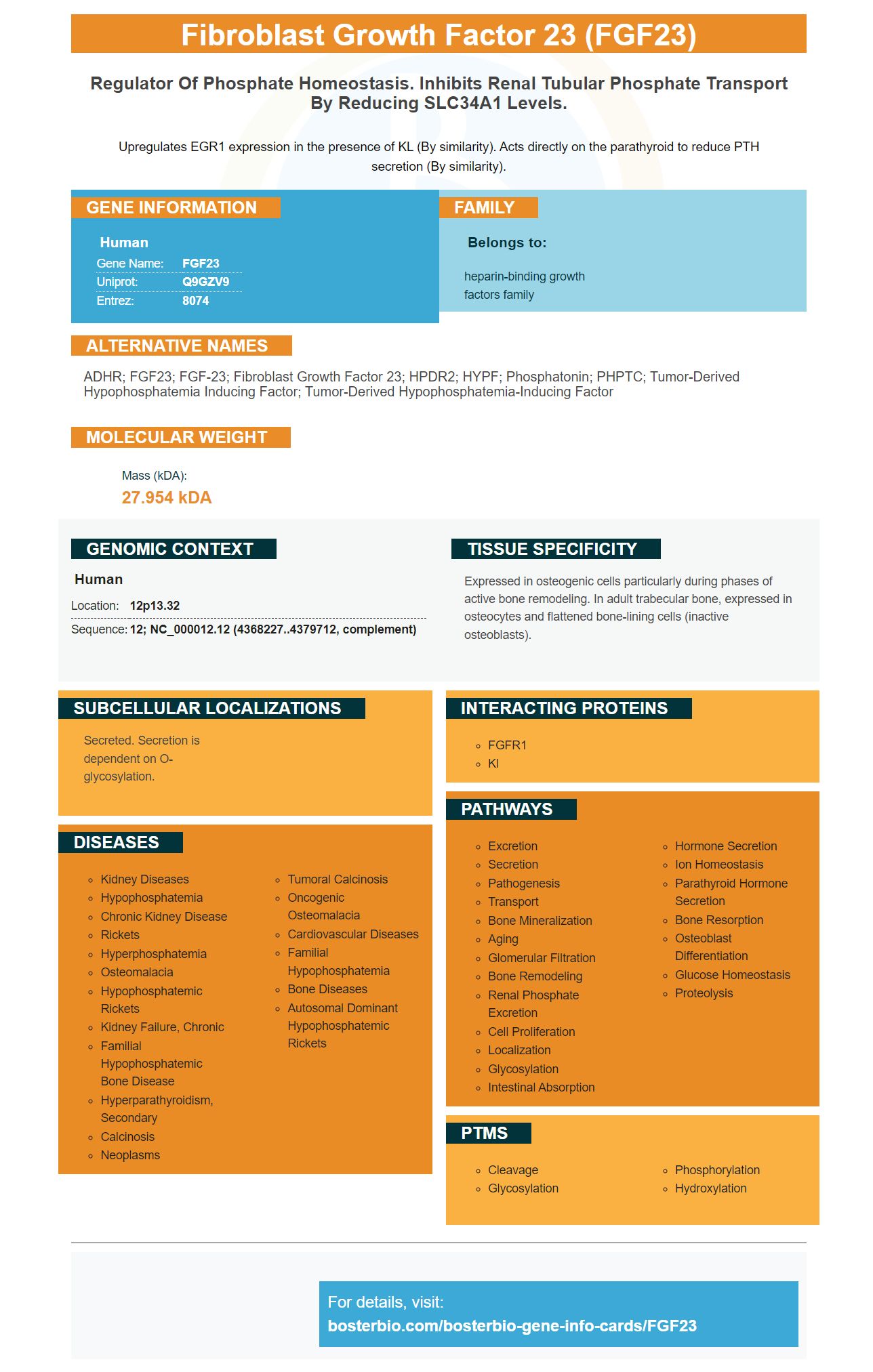 ADHR; FGF23; FGF-23; fibroblast growth factor 23; HPDR2; HYPF; phosphatonin; PHPTC; tumor-derived hypophosphatemia inducing factor; Tumor-derived hypophosphatemia-inducing factor
