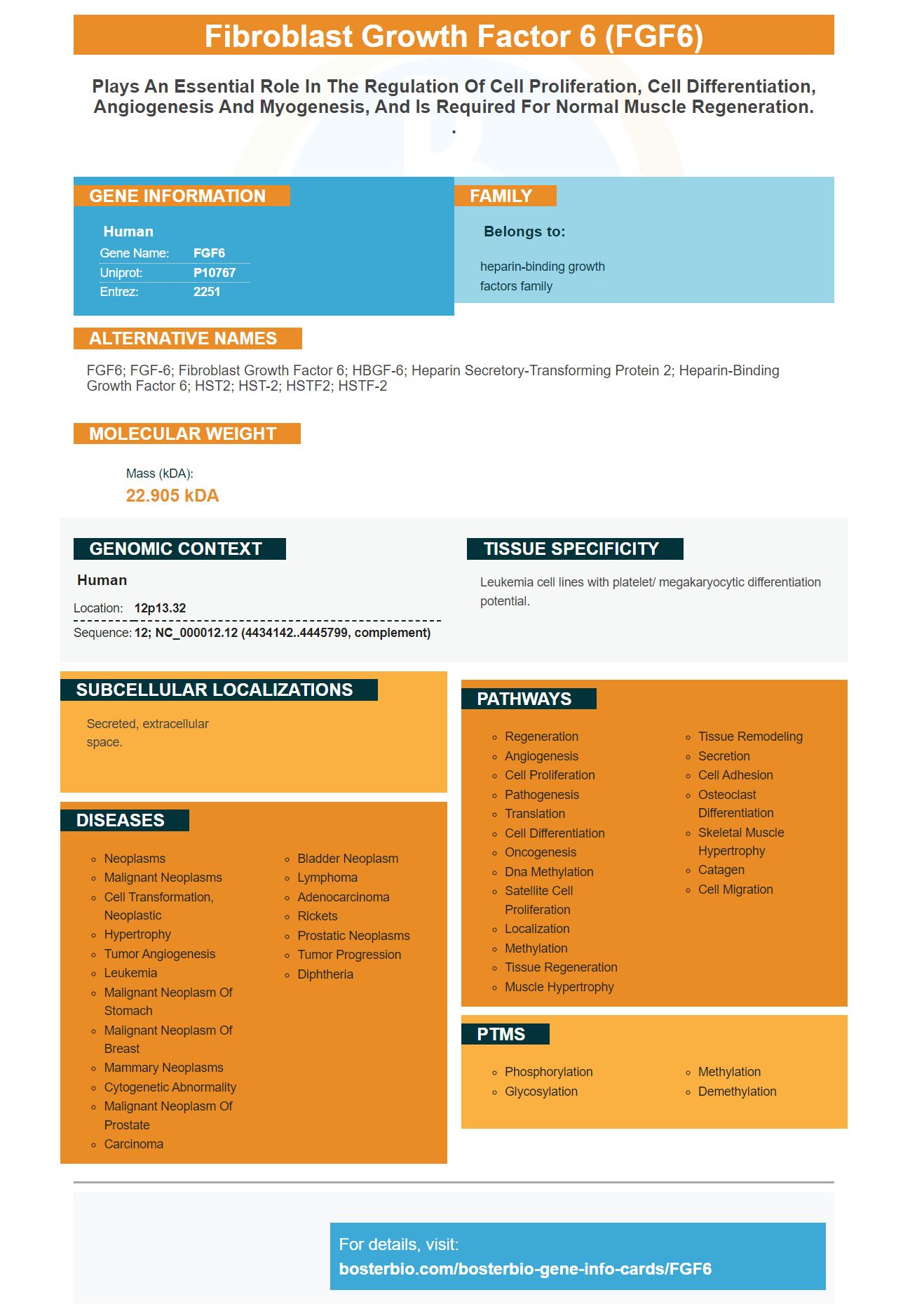 FGF6; FGF-6; fibroblast growth factor 6; HBGF-6; Heparin secretory-transforming protein 2; Heparin-binding growth factor 6; HST2; HST-2; HSTF2; HSTF-2