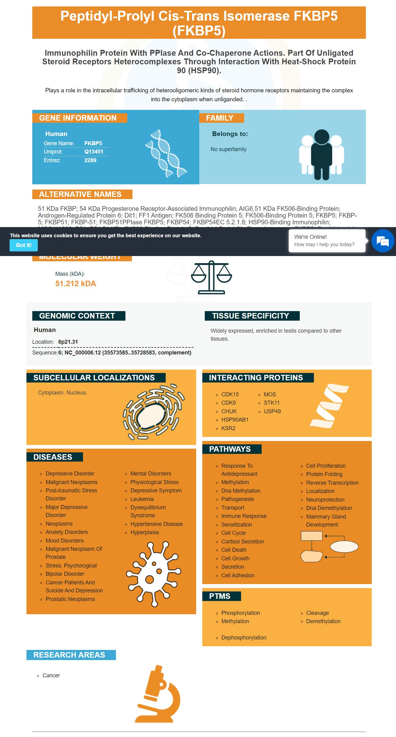 51 kDa FKBP; 54 kDa progesterone receptor-associated immunophilin; AIG6,51 kDa FK506-binding protein; Androgen-regulated protein 6; Dit1; FF1 antigen; FK506 binding protein 5; FK506-binding protein 5; FKBP5; FKBP-5; FKBP51; FKBP-51; FKBP51PPIase FKBP5; FKBP54; FKBP54EC 5.2.1.8; HSP90-binding immunophilin; MGC111006; p54; P54,51 kDa FK506-binding protein 5; peptidyl-prolyl cis-trans isomerase FKBP5; peptidylprolyl cis-trans isomerase; PPIase; Ptg-10; rotamase; T-cell FK506-binding protein