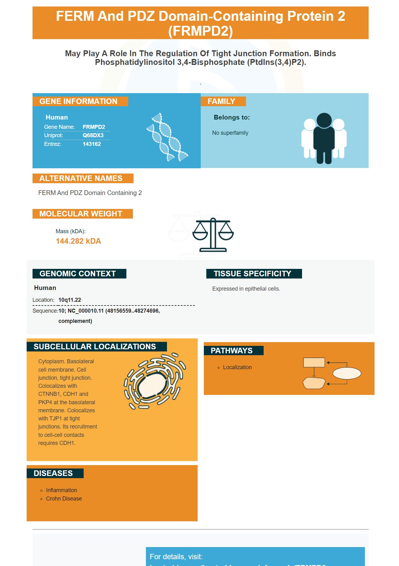 PMID: 19706687 by Stenzel N., et al. PDZ-domain-directed basolateral targeting of the peripheral membrane protein FRMPD2 in epithelial cells.