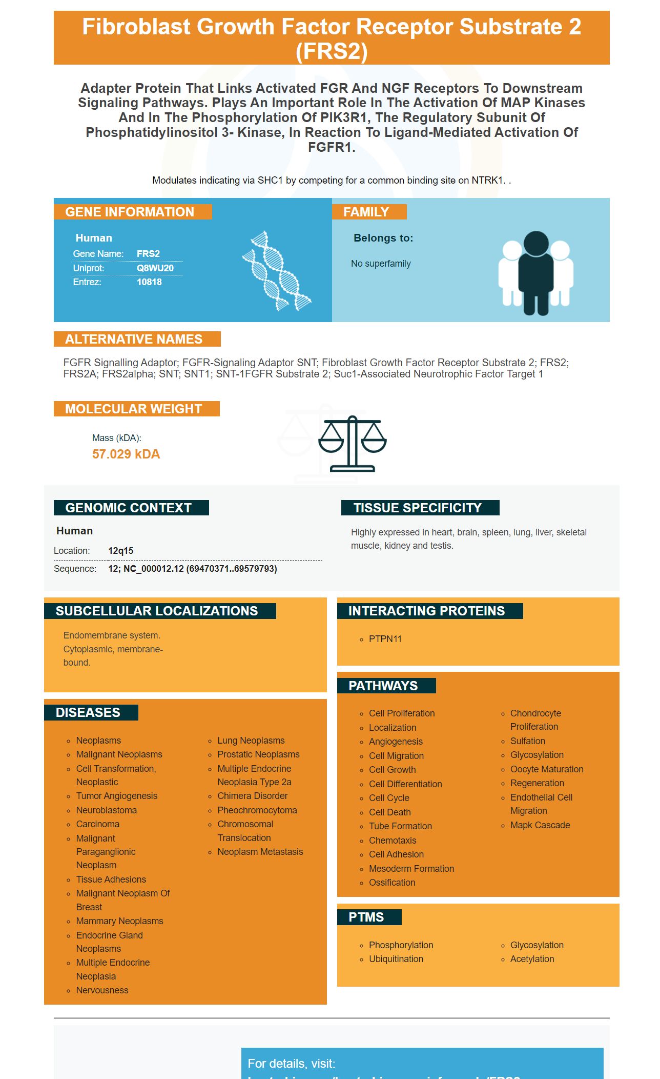 FGFR signalling adaptor; FGFR-signaling adaptor SNT; fibroblast growth factor receptor substrate 2; FRS2; FRS2A; FRS2alpha; SNT; SNT1; SNT-1FGFR substrate 2; Suc1-associated neurotrophic factor target 1
