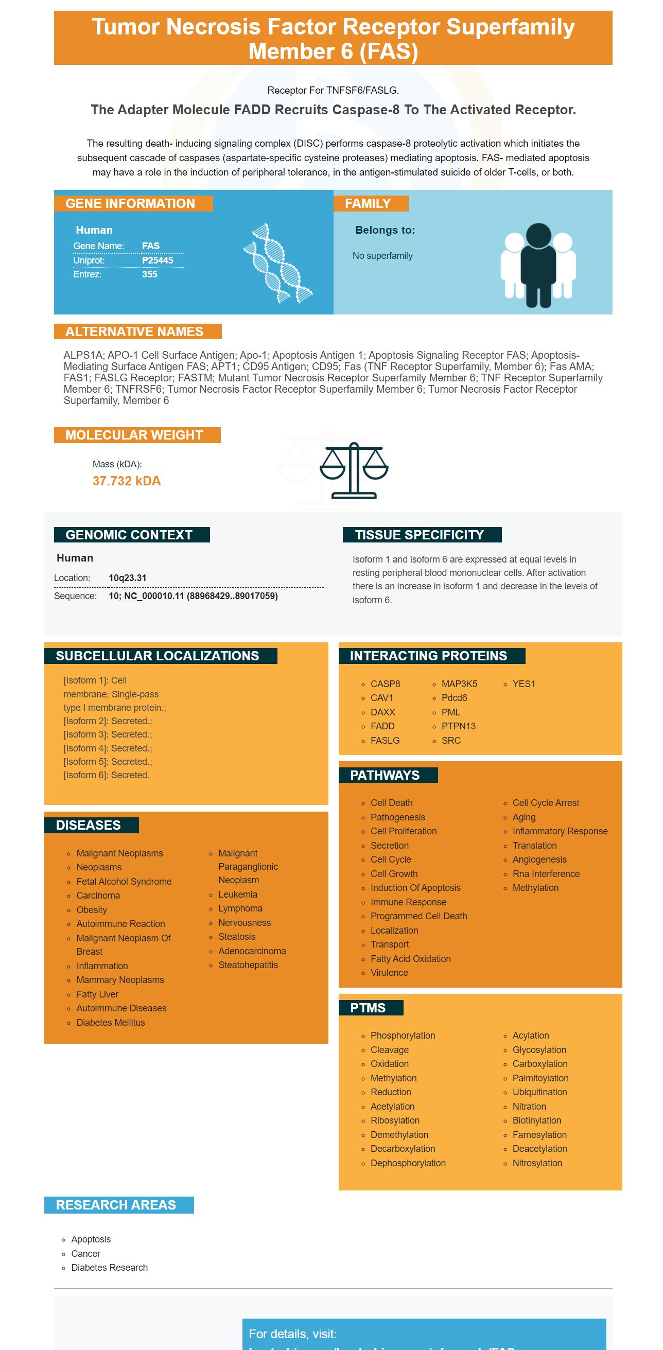 ALPS1A; APO-1 cell surface antigen; Apo-1; apoptosis antigen 1; apoptosis signaling receptor FAS; Apoptosis-mediating surface antigen FAS; APT1; CD95 antigen; CD95; Fas (TNF receptor superfamily, member 6); Fas AMA; FAS1; FASLG receptor; FASTM; mutant tumor necrosis receptor superfamily member 6; TNF receptor superfamily member 6; TNFRSF6; tumor necrosis factor receptor superfamily member 6; tumor necrosis factor receptor superfamily, member 6