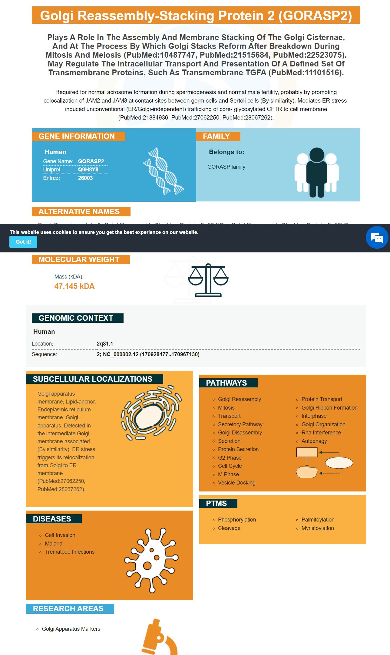 Facts about Golgi reassembly-stacking protein 2.