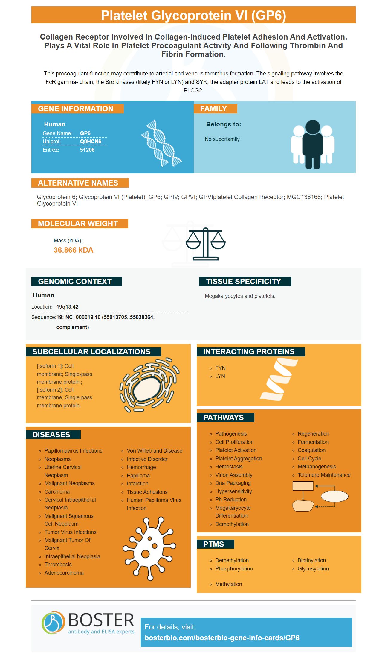 Glycoprotein 6; glycoprotein VI (platelet); GP6; GPIV; GPVI; GPVIplatelet collagen receptor; MGC138168; platelet glycoprotein VI