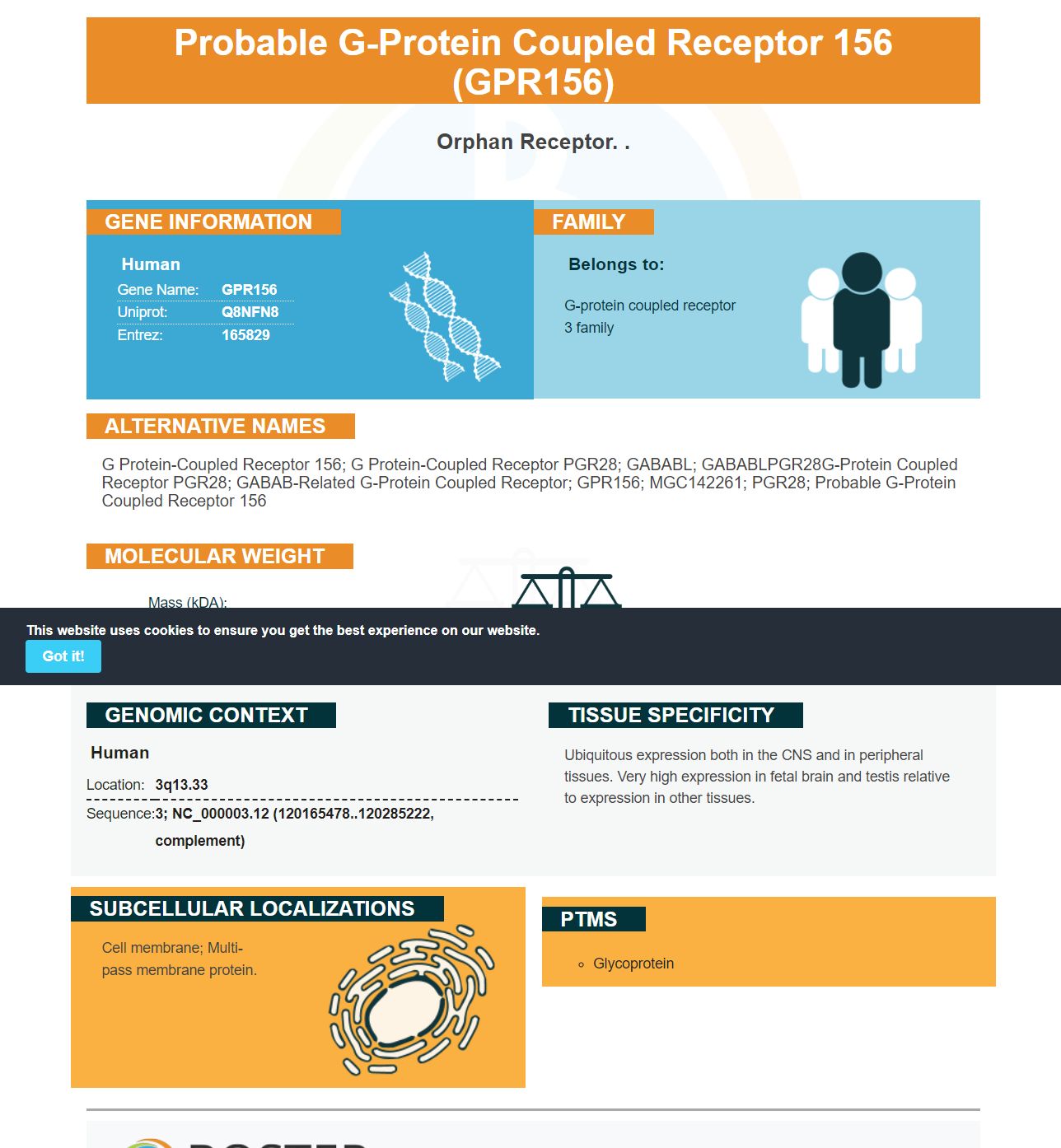 G protein-coupled receptor 156; G protein-coupled receptor PGR28; GABABL; GABABLPGR28G-protein coupled receptor PGR28; GABAB-related G-protein coupled receptor; GPR156; MGC142261; PGR28; probable G-protein coupled receptor 156