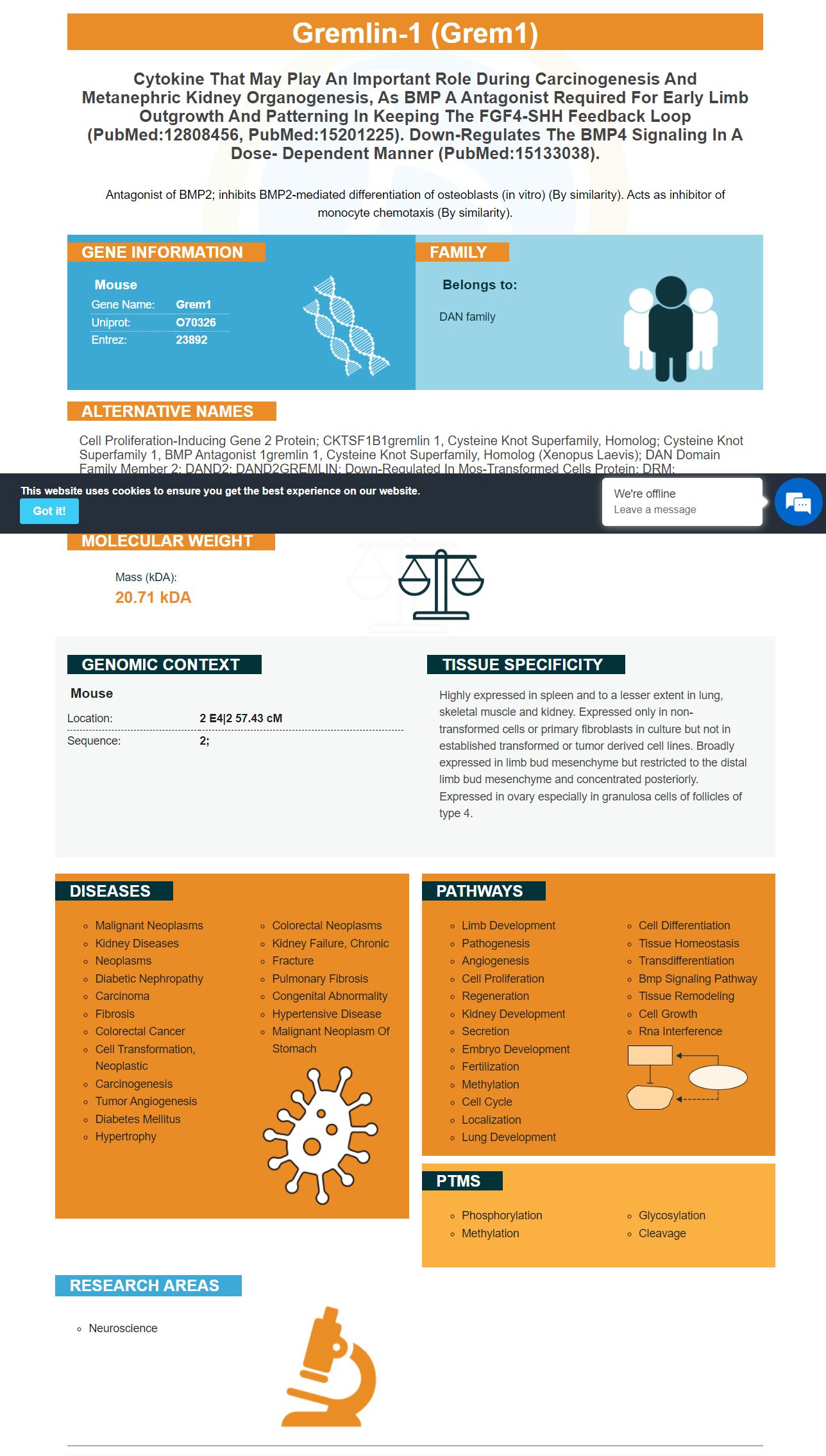 Cell proliferation-inducing gene 2 protein; CKTSF1B1gremlin 1, cysteine knot superfamily, homolog; Cysteine knot superfamily 1, BMP antagonist 1gremlin 1, cysteine knot superfamily, homolog (Xenopus laevis); DAN domain family member 2; DAND2; DAND2GREMLIN; Down-regulated in Mos-transformed cells protein; DRM; DRMMGC126660; GREM1; gremlin 1; gremlin 1-like protein; Gremlin; gremlin-1; IHG-2; Increased in high glucose protein 2; increased in high glucose-2; proliferation-inducing gene 2
