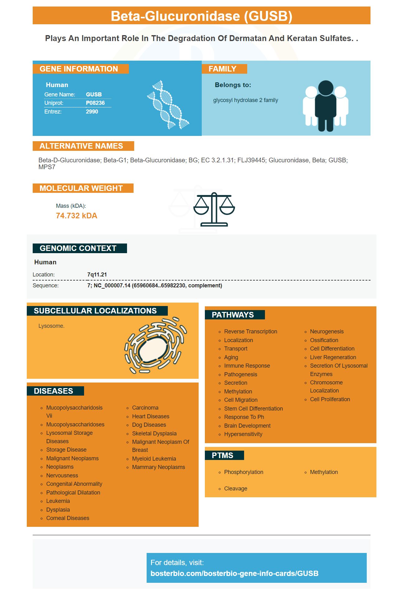 beta-D-glucuronidase; Beta-G1; beta-glucuronidase; BG; EC 3.2.1.31; FLJ39445; glucuronidase, beta; GUSB; MPS7