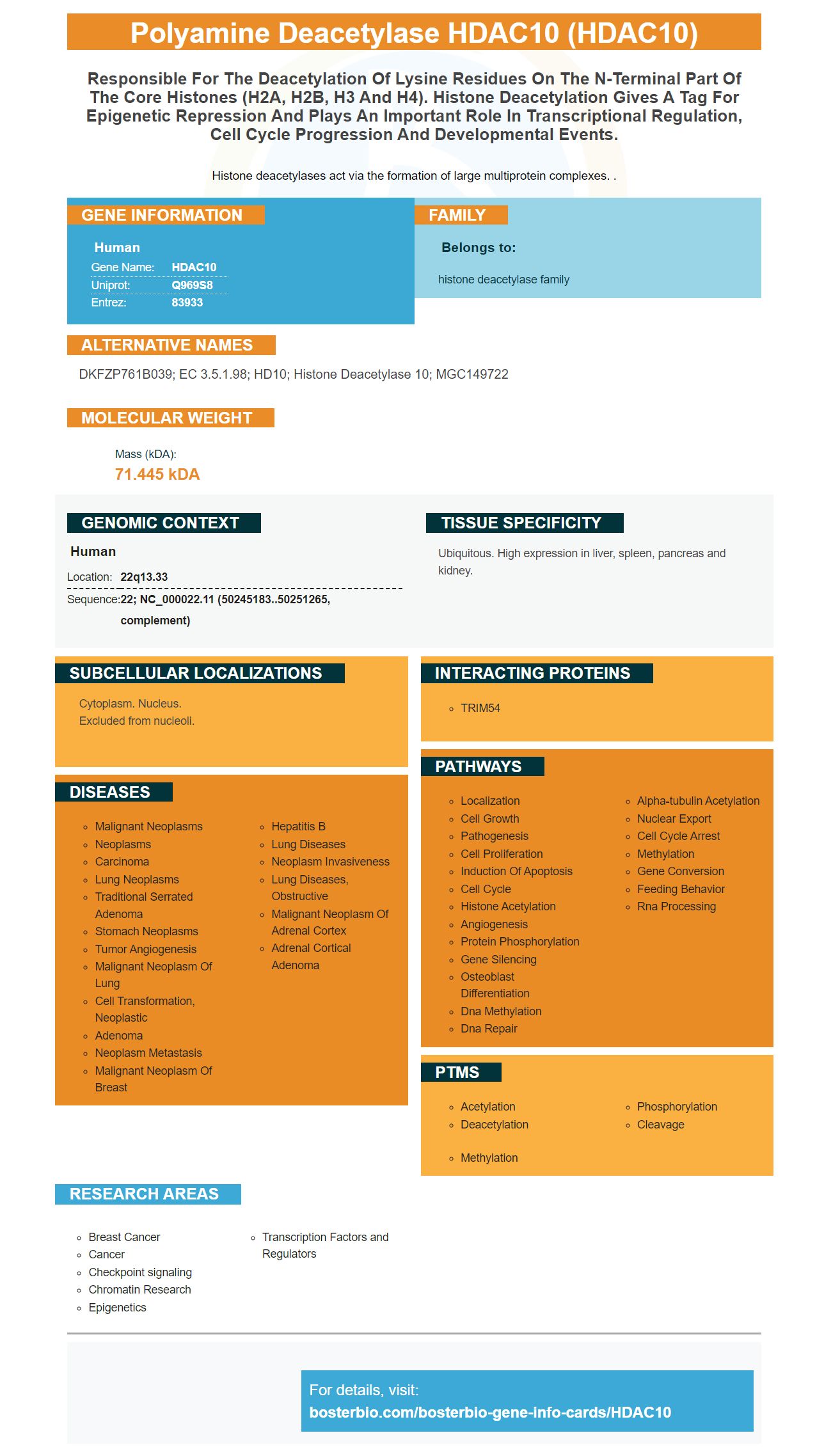 PMID: 11861901 by Tong J.J., et al. Identification of HDAC10, a novel class II human histone deacetylase containing a leucine-rich domain.