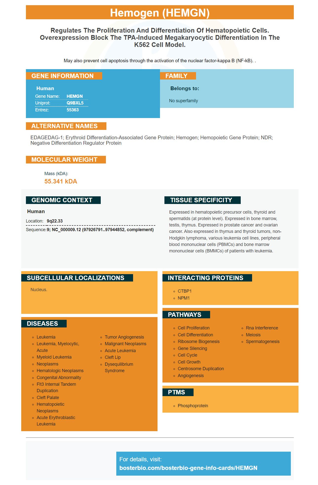 PMID: 11404085 by Yang L.V., et al. Hemogen is a novel nuclear factor specifically expressed in mouse hematopoietic development and its human homologue EDAG maps to chromosome 9q22, a region containing breakpoints of hematological neoplasms.