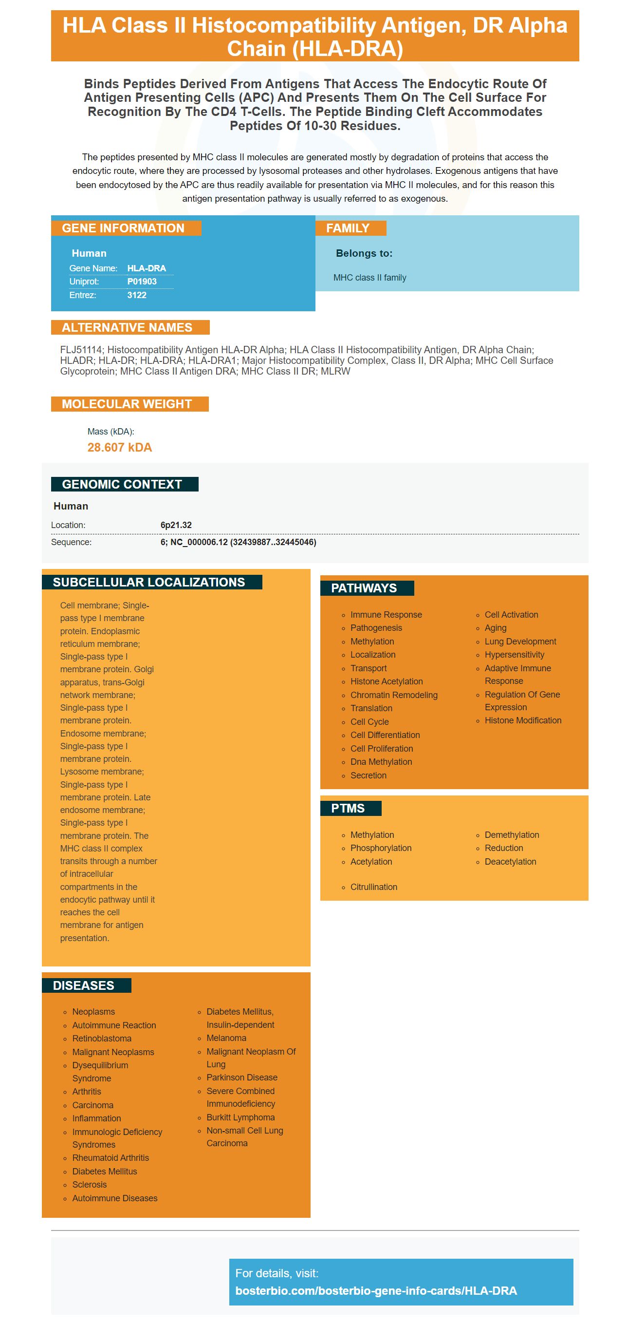 FLJ51114; histocompatibility antigen HLA-DR alpha; HLA class II histocompatibility antigen, DR alpha chain; HLADR; HLA-DR; HLA-DRA; HLA-DRA1; major histocompatibility complex, class II, DR alpha; MHC cell surface glycoprotein; MHC class II antigen DRA; MHC Class II DR; MLRW