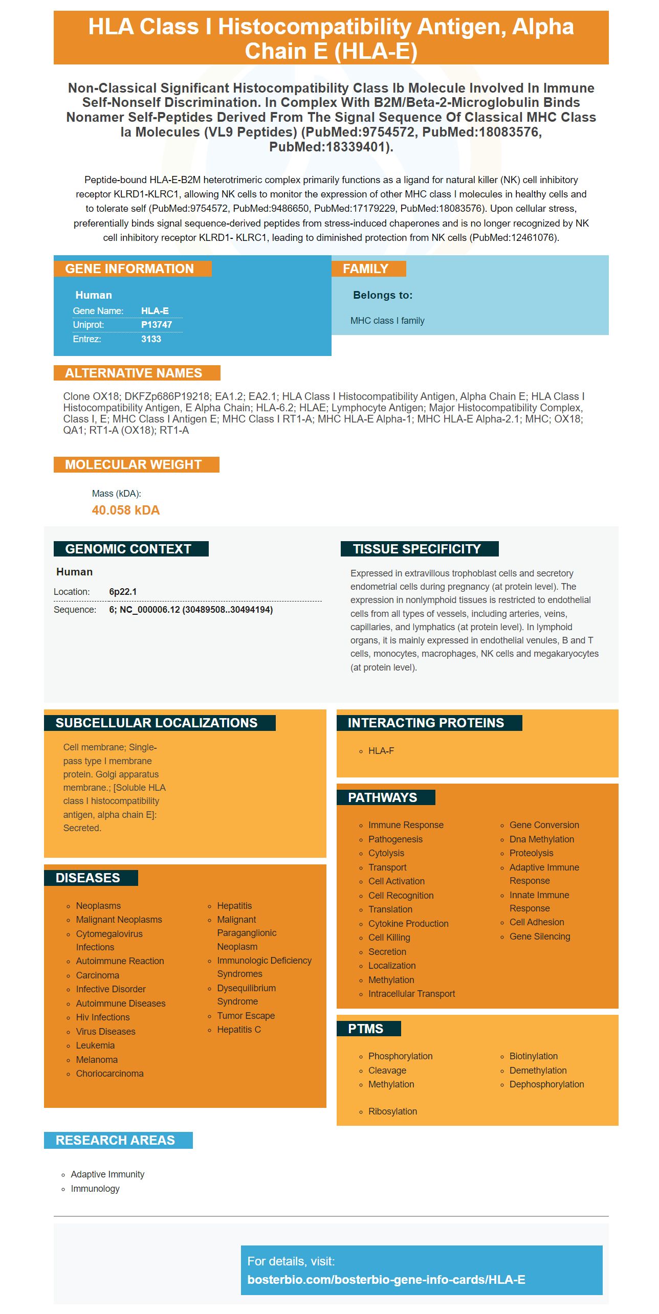 Facts about HLA class I histocompatibility antigen, alpha chain E.